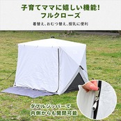 ●セット内容:本体、取扱説明書、キャリーバッグ、ペグ×11、ガイドロープ2m×2(前室用)、ガイドロープ1.5m×3●本体サイズ(約):幅143×奥行177×高さ115cm●収納時サイズ(約):幅95×奥行12×高さ12cm●重量(約):2.71kg●材質:[フレーム]グラスファイバー●張り材:ポリエステル