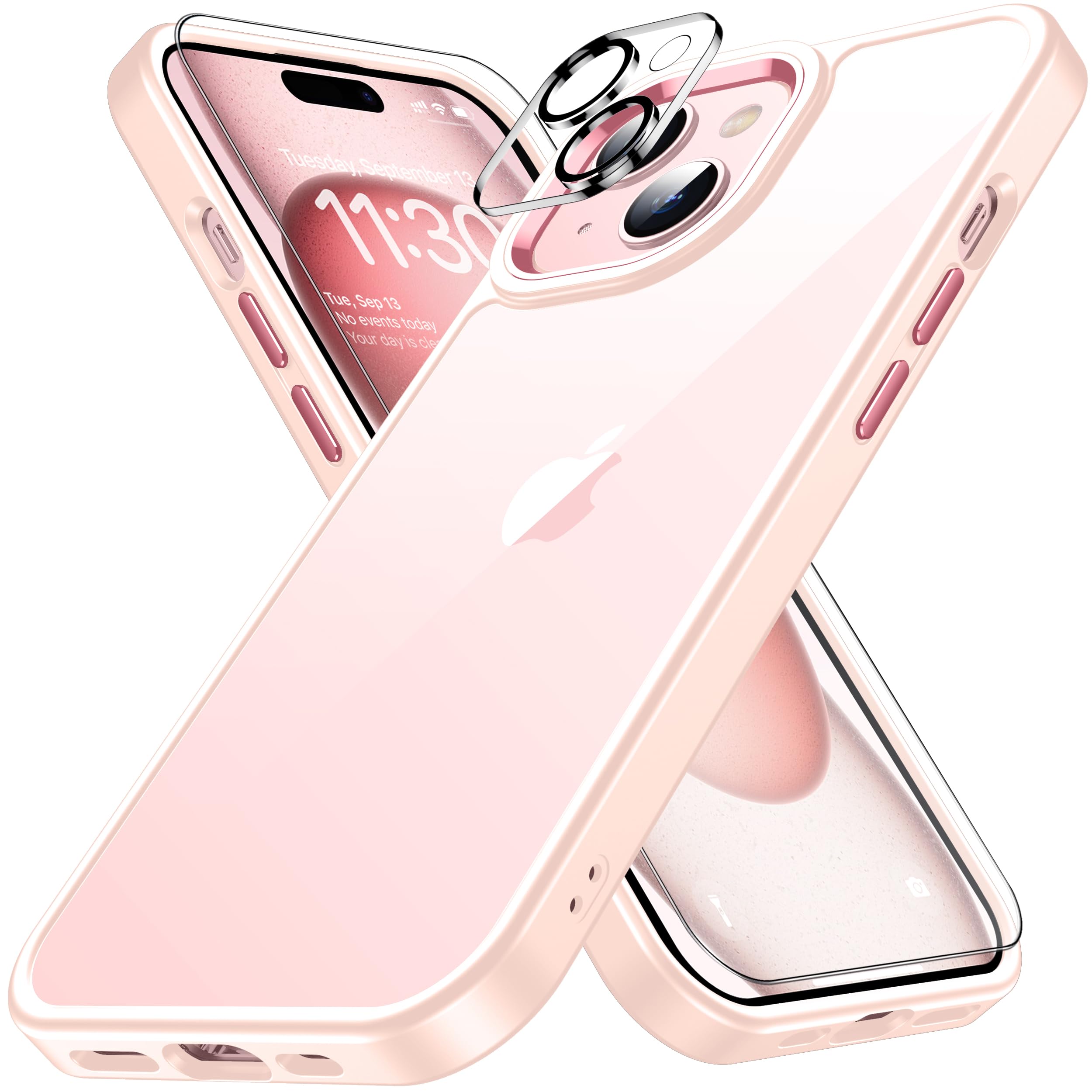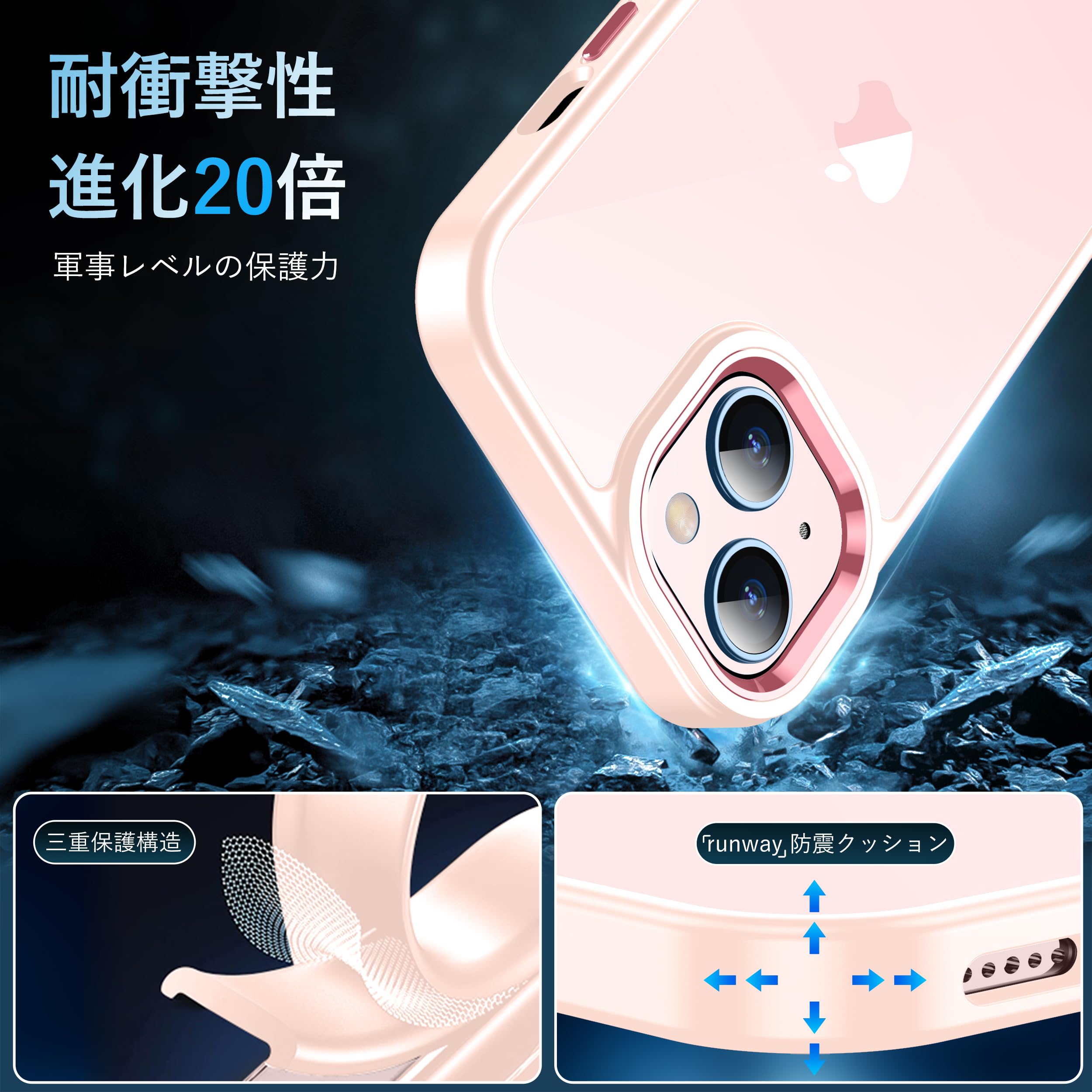 XIWXI iphone15 用 ケース ピンク 耐衝撃 カメラレンズ保護付き アイフォン15 用 ケース 米軍MIL規格 耐久性 黄ばみ防止 アイホン15 用 ケース ワイヤレス充電対応 対応 SGS認証 スマホケース カバー 6.1インチ