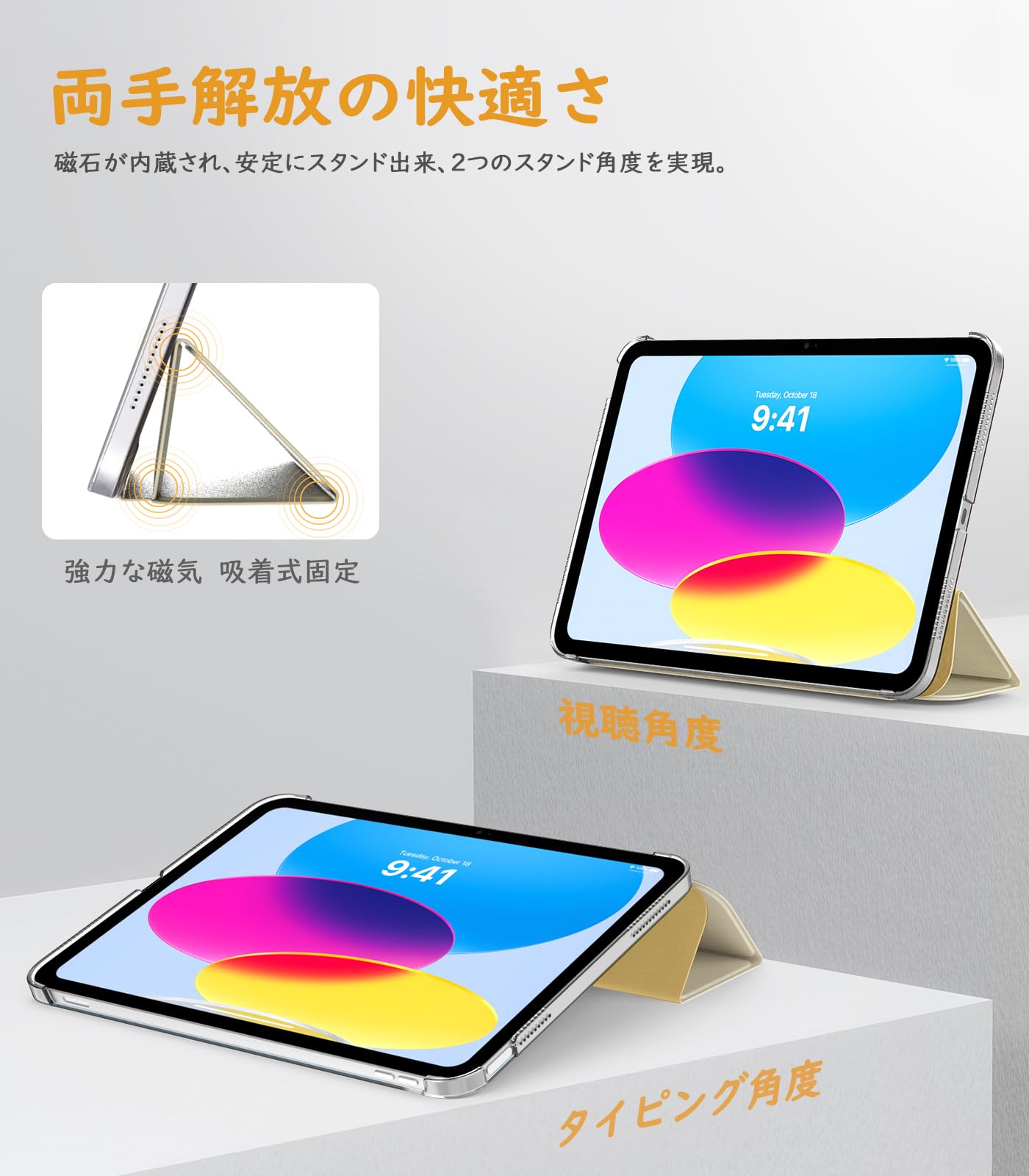 【新着商品】TiMOVO iPad 11世代(A16)ケース 11インチ iPad 10世代 ケース 10.9インチ ipad第10世代 カバー ハードカバー PUレーザー 開閉式 三つ折り スタンド マグネット オートスリープ機能 耐衝撃 軽量 落下防止 精密設計 着脱簡単 ipad第11世代ケース 半透明 ChampagneGold | nico3588