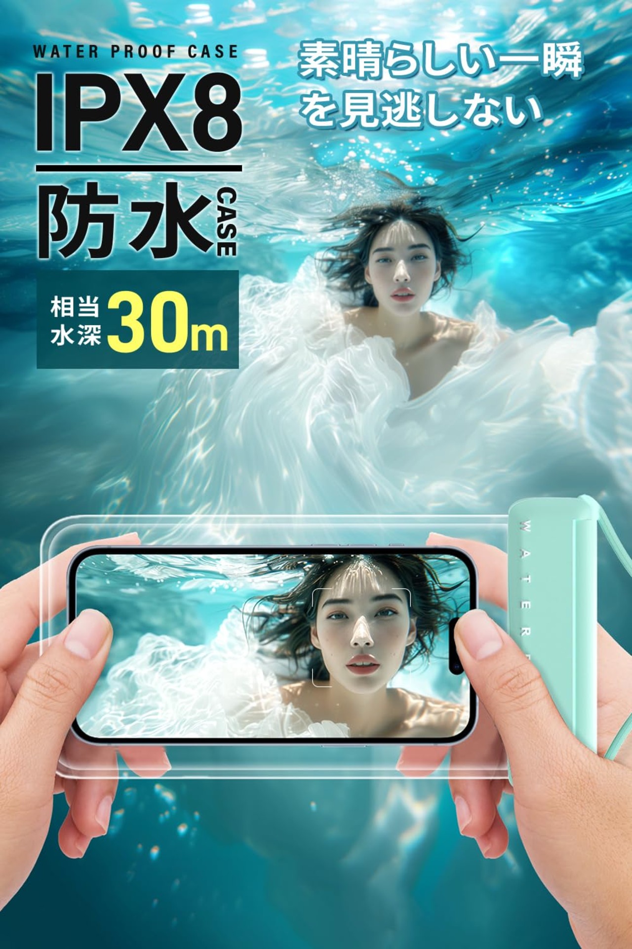 【完璧のIPX8防水性能!機能全面アップグレード】2024年最新型の スマホ防水ケースは全面的にアップグレードした!①独特な4重ロック構造を採用し、完璧な防水性能を実現し、気密性抜群水漏れ0!防水国際保護等級IPX8認定を獲得済、安心の防水ケース!②ベタつきしない高品質TPUにアップグレードし、耐磨耗性と透明度がアップするほか、タッチ感度も最適レベルに保ち、タッチ操作はもちろん、「指紋認証」も顔認証もできる;③ 防水ケース 大きめサイズにアップグレードし、7.2インチまでのスマホを収納でき、一般のスマホでは保護ケースを外し無くても余裕に入れる!!④ストラップもアップグレードし、丈夫で長めのストラップは、ショルダー/ネックのどちらにもお使いいただける2WAY仕様。肩から斜め掛けでき、ファッション感覚としても楽しみたい方にもおすすめ!!この夏、外遊びを思う存分に楽しめます。
