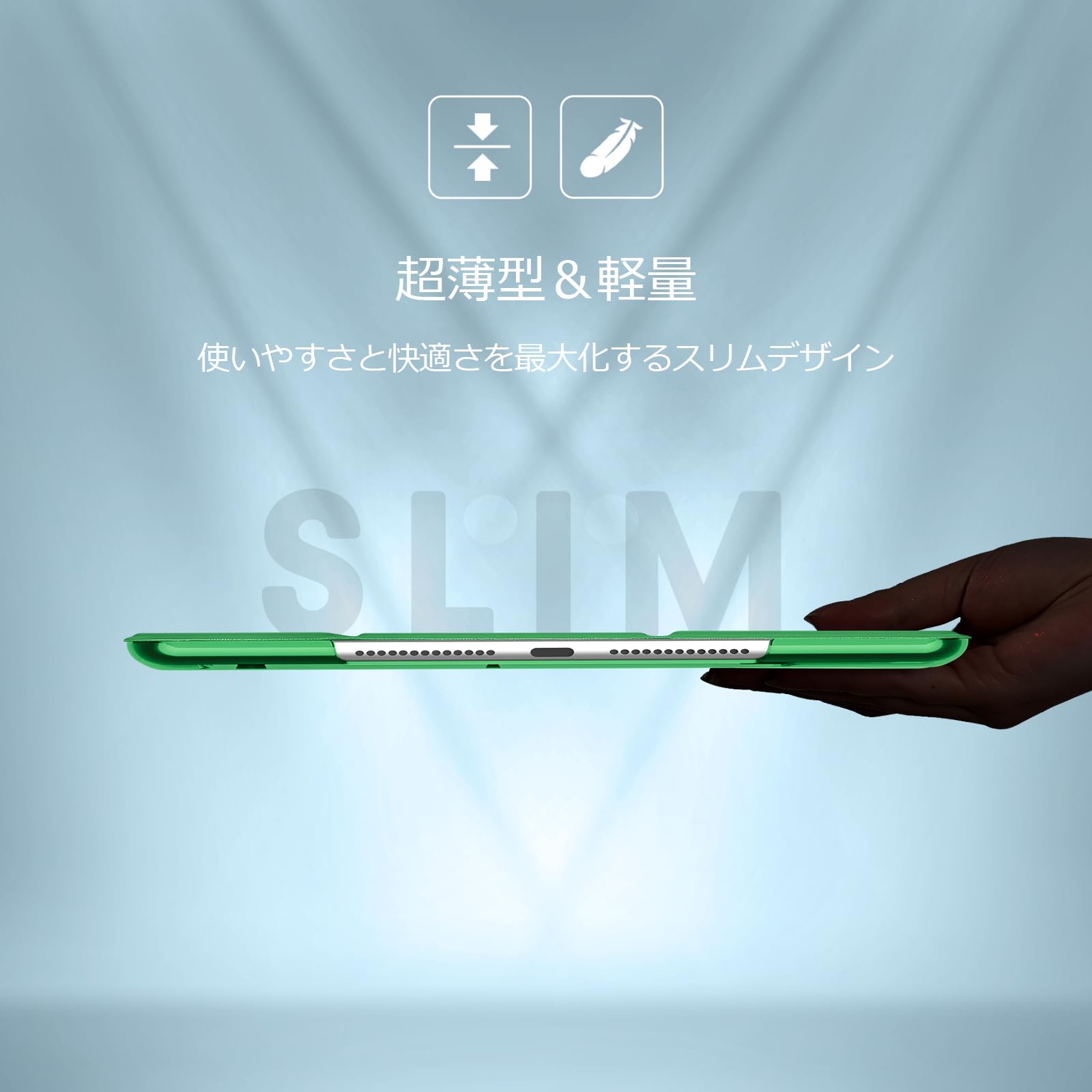 超スリムで軽量なハードバックデザインにより、最小限の重さを追加する前提にiPadを保護します。