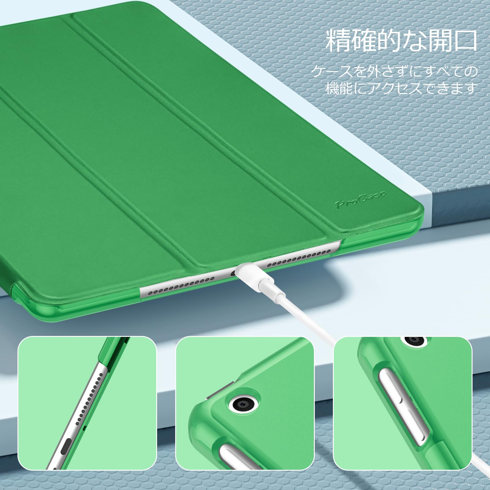 シンプルがクラシックのデザイン;開口部が精確的ですべての機能へ自由にアクセスできます(カメラ、スピーカー、ポートなど)。ご注意:スマートキーボードと搭載使用はサポートしません。