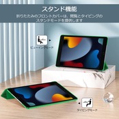ProCase iPad 9/8/7 ケース (2021 2020 2019) 半透明バックカバー スマートカバー 軽量 三つ折りスタンド iPad 10.2 対応 - グリーン