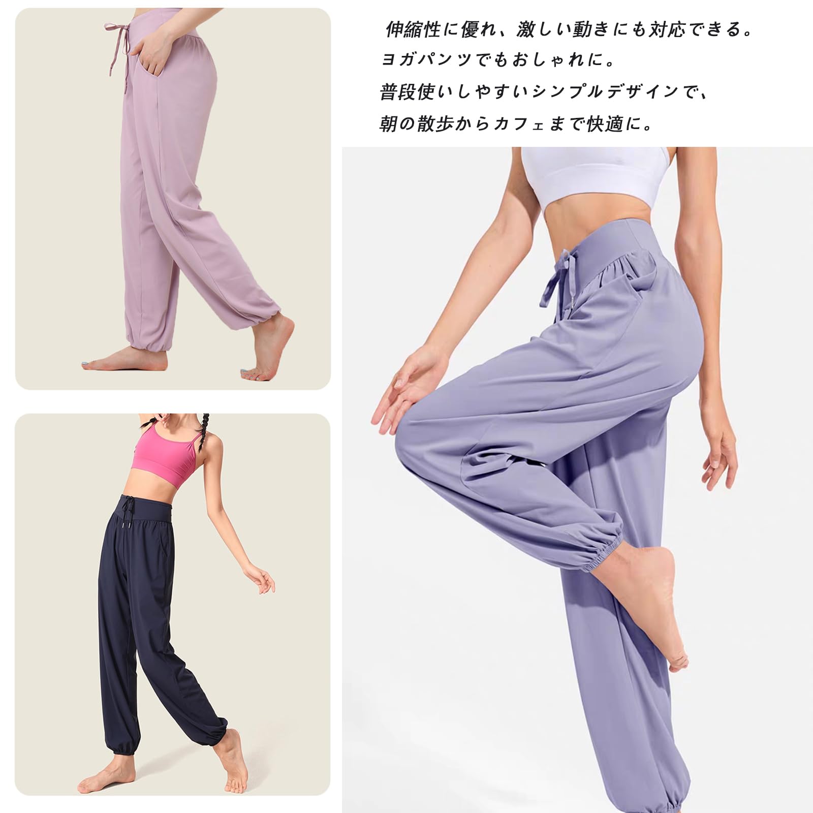 優れたストレッチ性でホットヨガ、フィットネス、トレーニング、ランニング、ダンス、ピラティス、ウォーキングなどさまざまなシーンで着られる万能ヨガパンツです