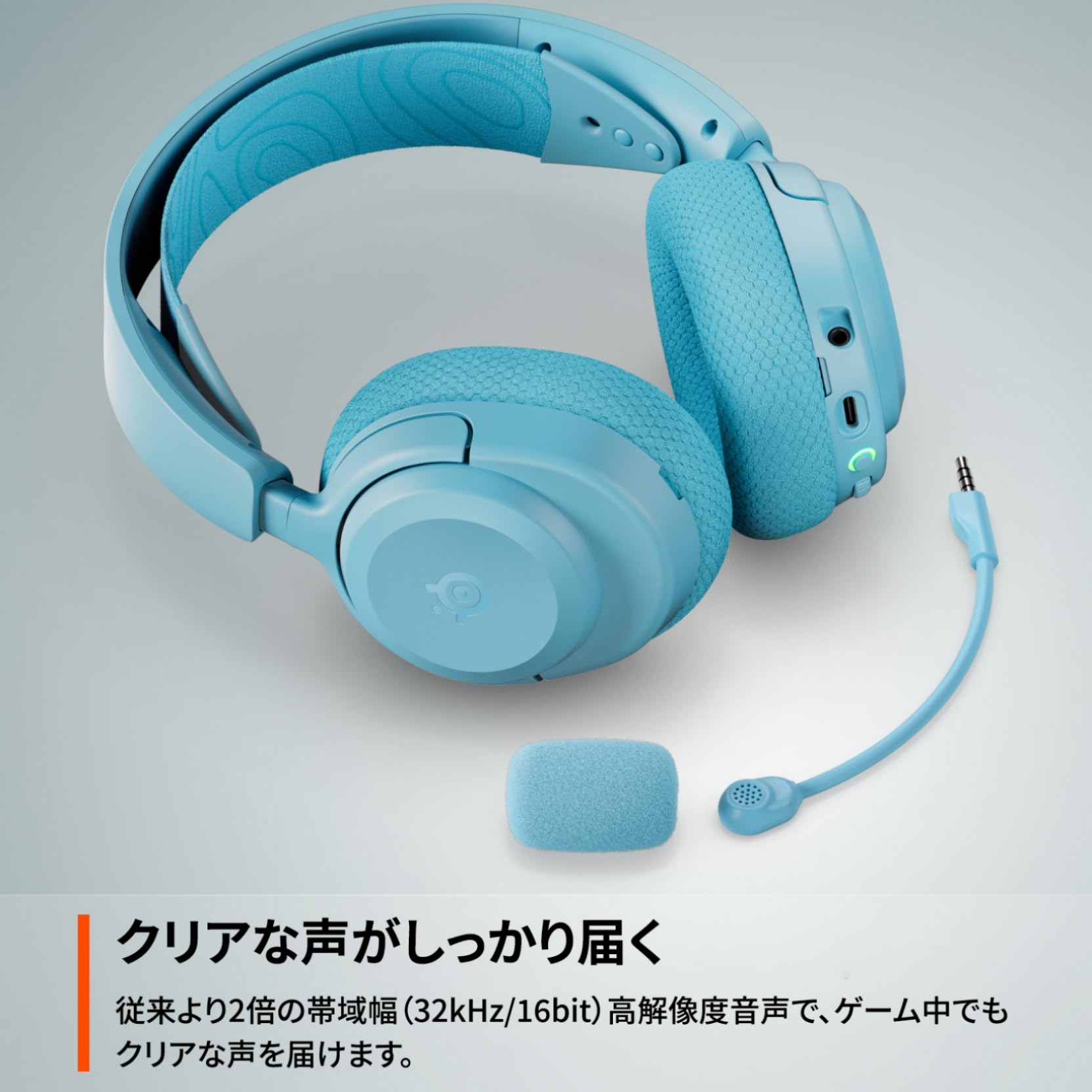 【クリアな声がしっかり届く】従来の2倍帯域幅 (32kHz/16bit) の解像度の高い音声で、ゲーム中でも声をクリアに届け、仲間との連携力を高めてくれる。