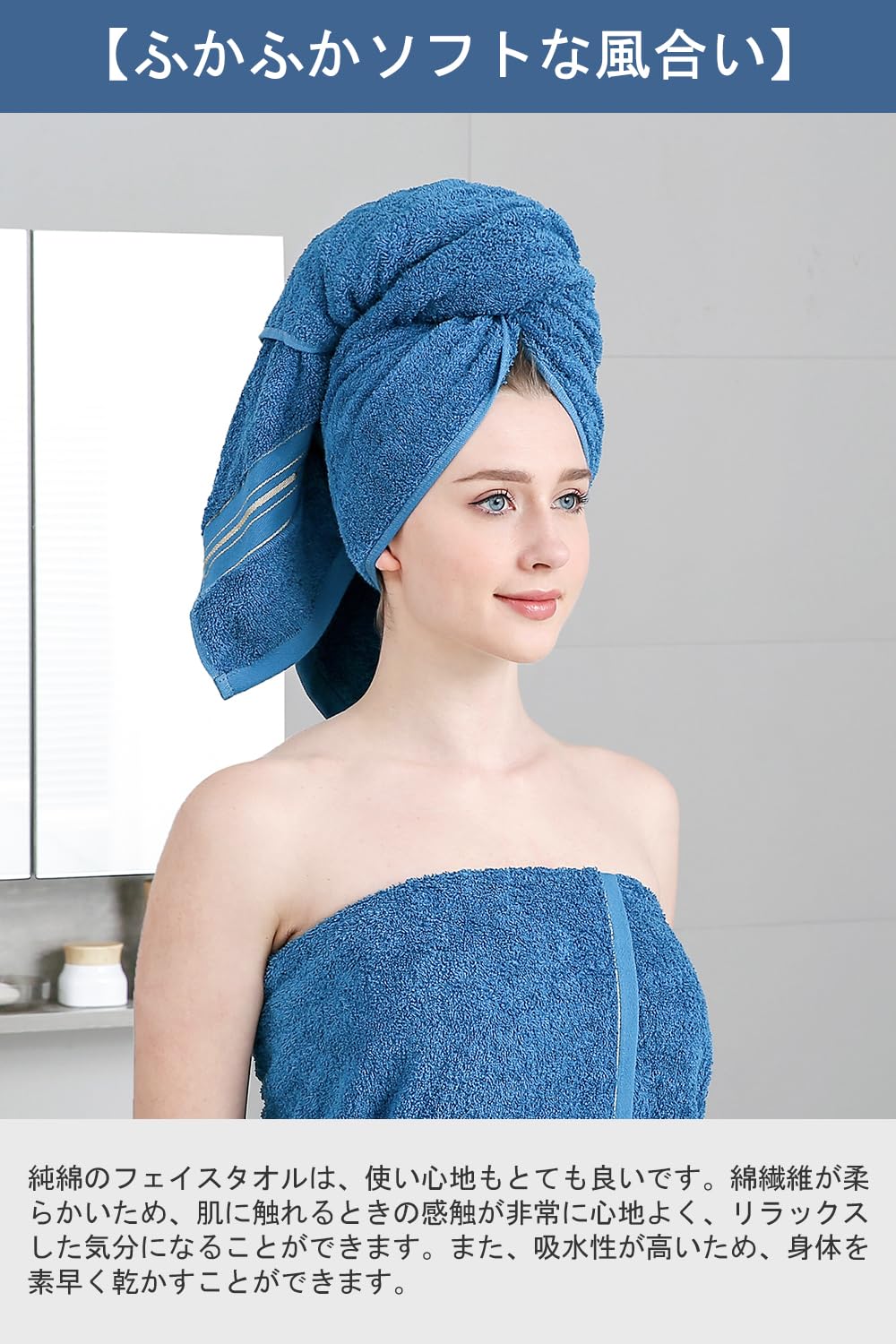 【ふかふかソフトな風合い】純綿のバスタオルは、使い心地もとても良いです。綿繊維が柔らかいため、肌に触れるときの感触が非常に心地よく、リラックスした気分になることができます。また、吸水性が高いため、身体を素早く乾かすことができます。