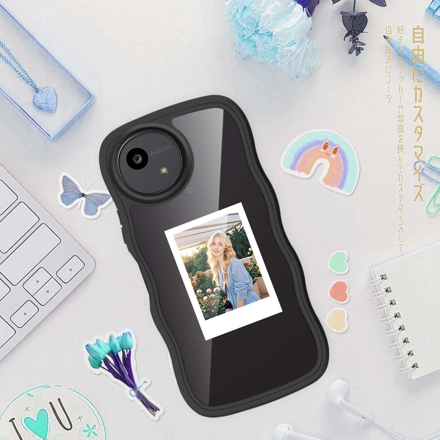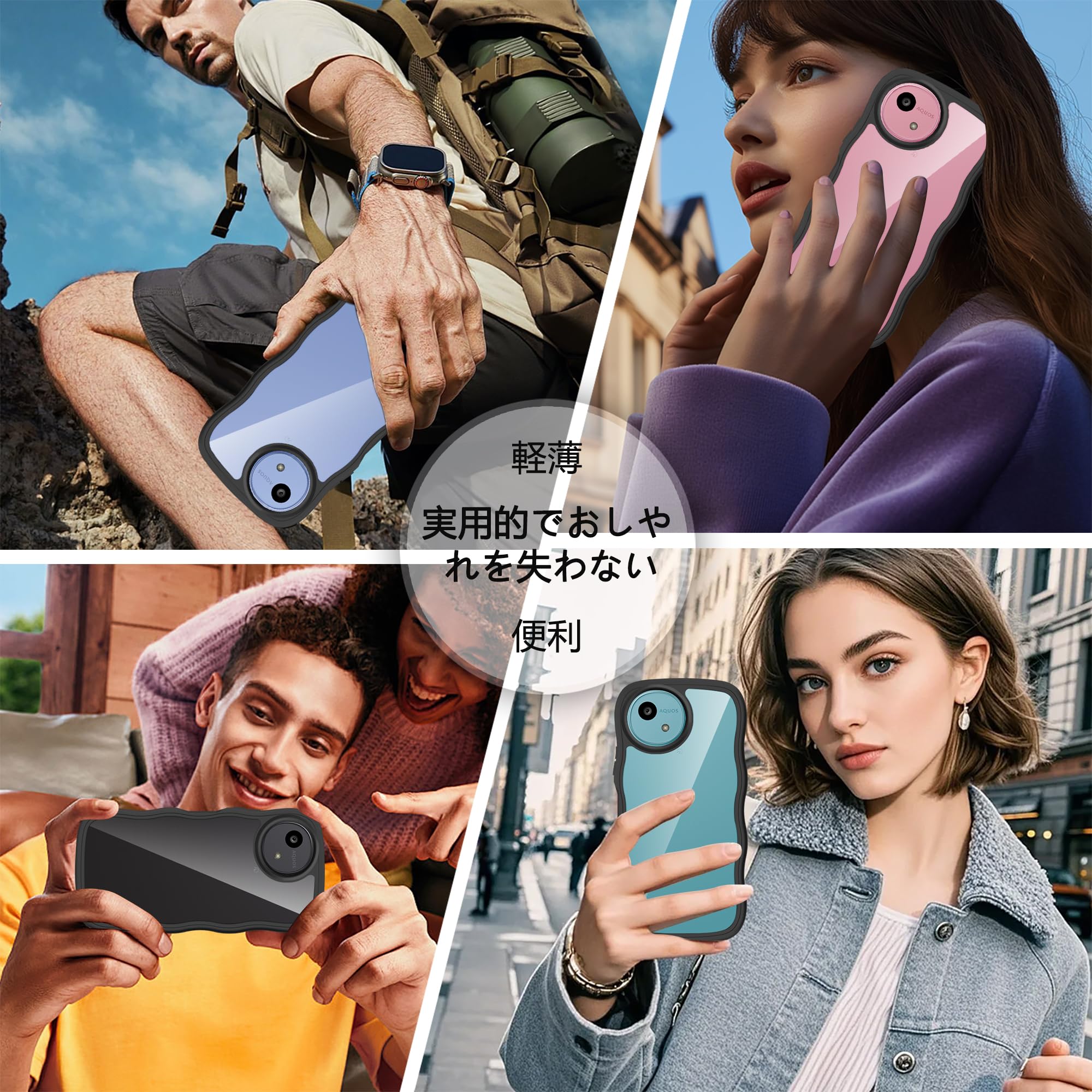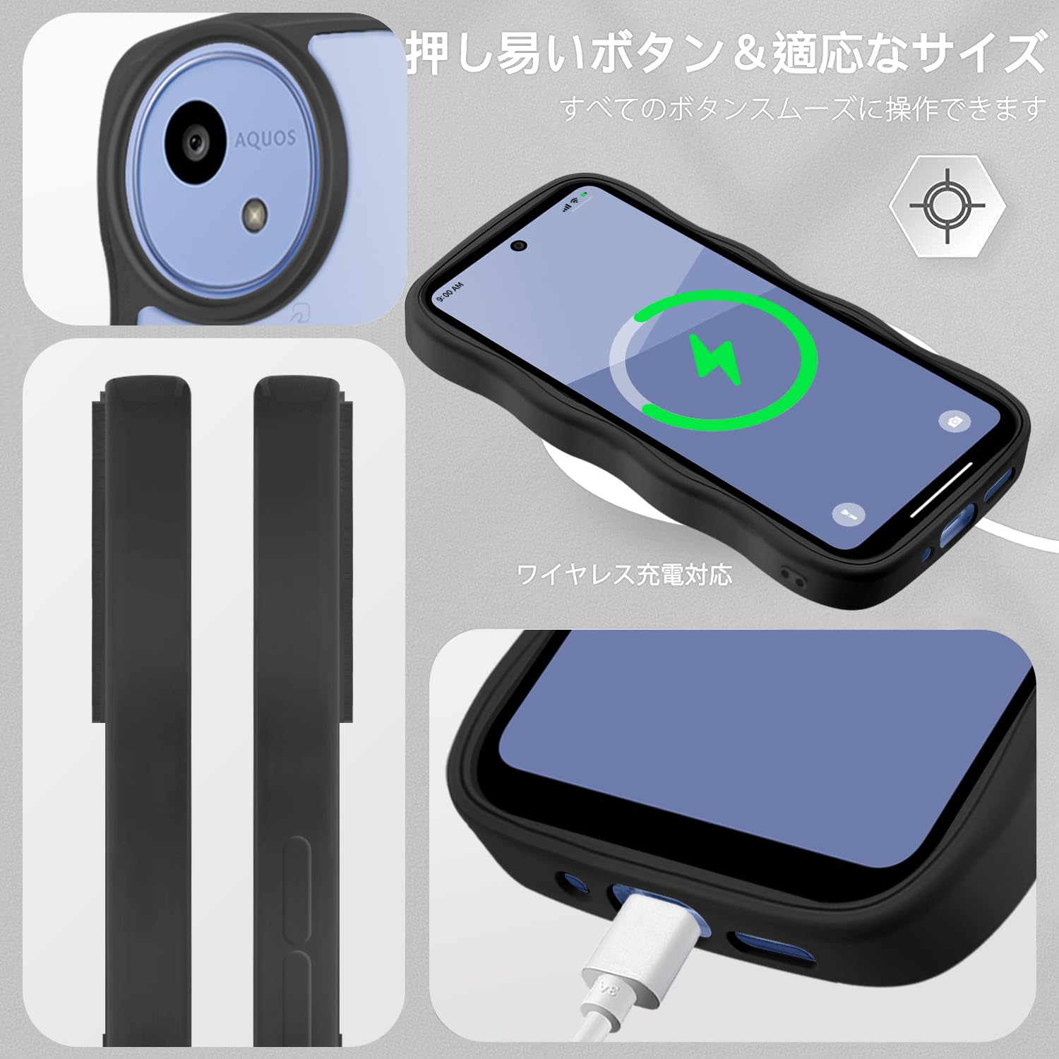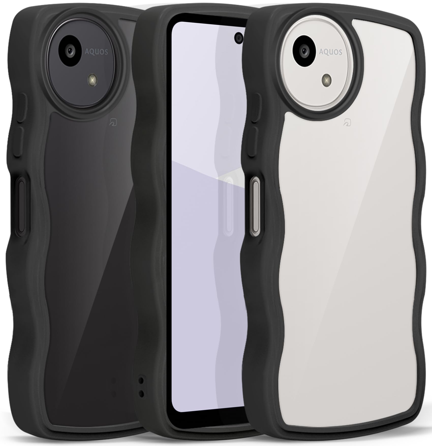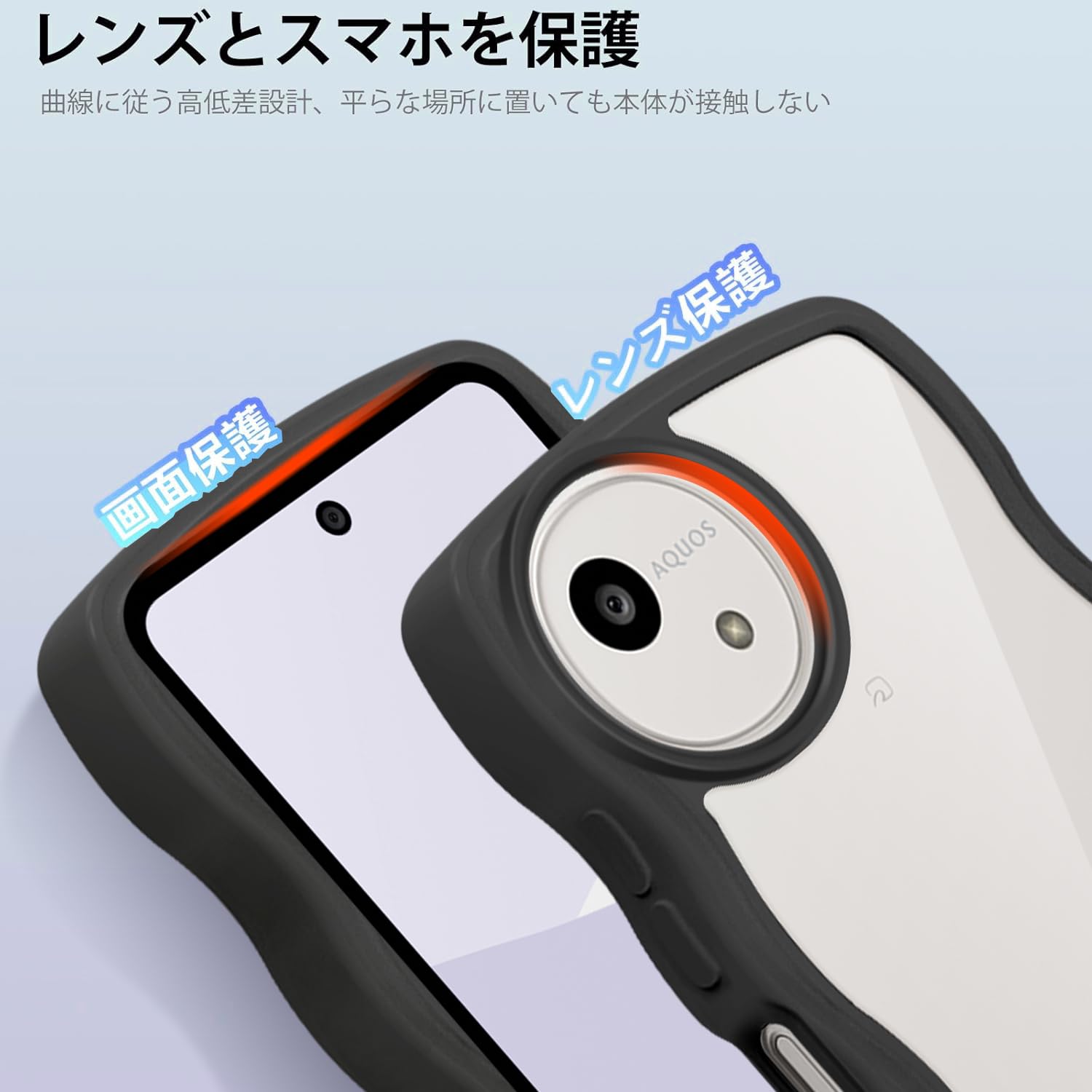 AQUOS wish5 SH-52F ケース クリア ウェーブ おしゃれ 韓国 かわいい 可愛い アクオス Wish5 スマホケース 人気 シンプル 滑り止め 薄型 軽量 耐衝撃 指紋防止 レンズ保護 ストラップホール付き シリコン 透明(ブラック)