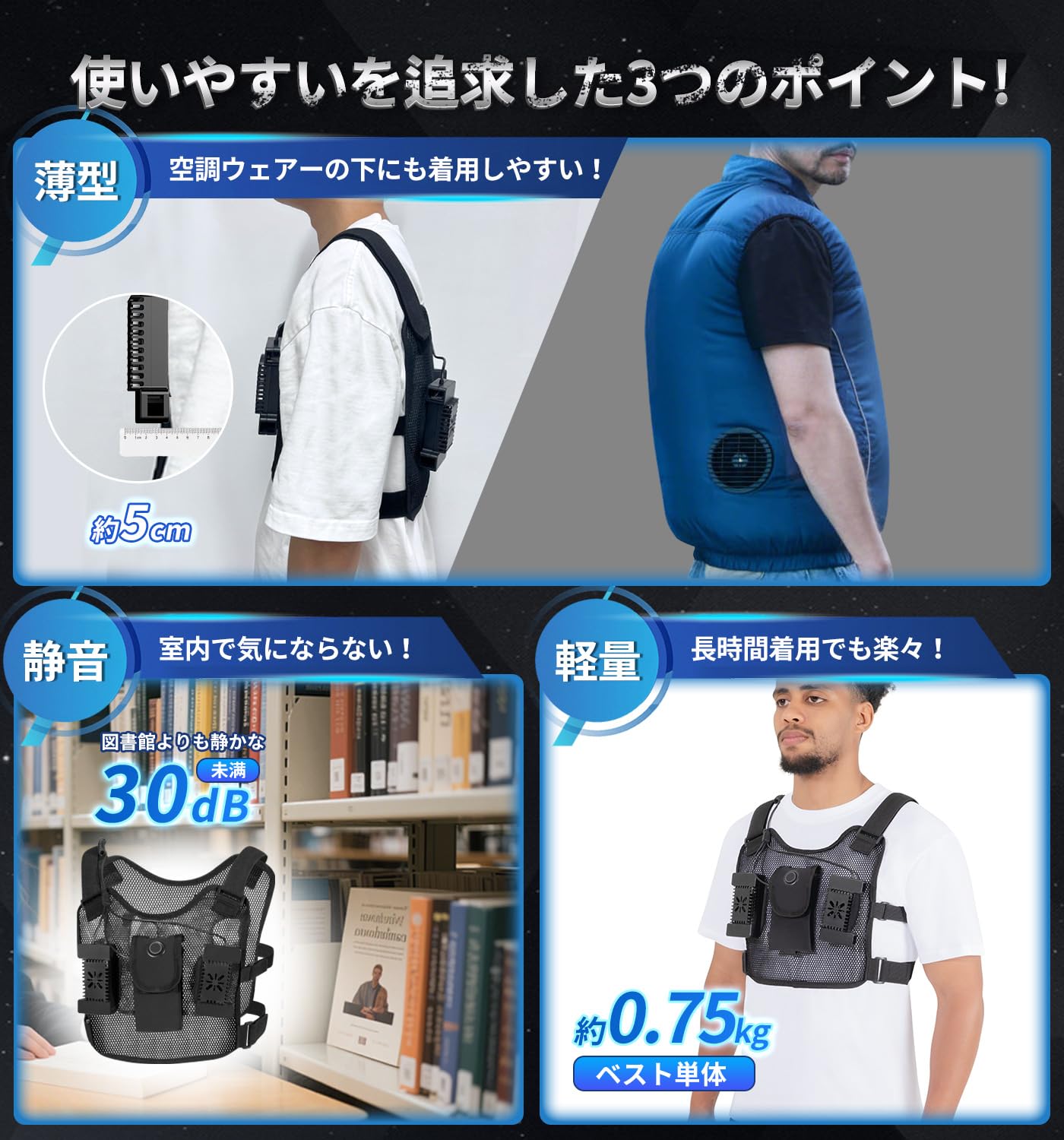 【2025夏業界最強冷却&4つ冷却プレート搭載&ペルチェ素子 冷却ベスト】業界先端半導体冷却システム搭載し、従来の小型冷却器から大面積の前後4つ冷却プレートを進化されました!ワンボタン簡単操作で、冷たい缶ジュースを背中に当てたよう、瞬間冷却で超爽快!1秒で肌に冷たさを伝え、体感温度が最大マイナス28℃ーーまさに日本初の最強「ペルチェ ベスト」!!暑さと戦うあなたに、ぜひお使いいただきたいこの夏新作。現場仕事をはじめ、室内でも暑さから免れない調理場や工場作業の方々にも最適です。1日中冷たいからこそ自信を持っておすすめ致します!