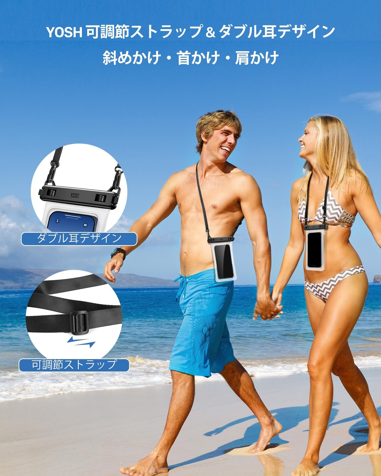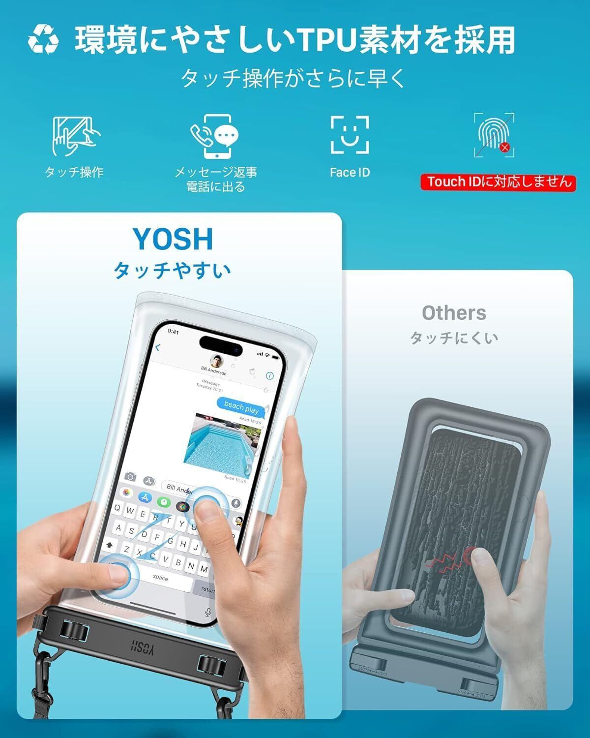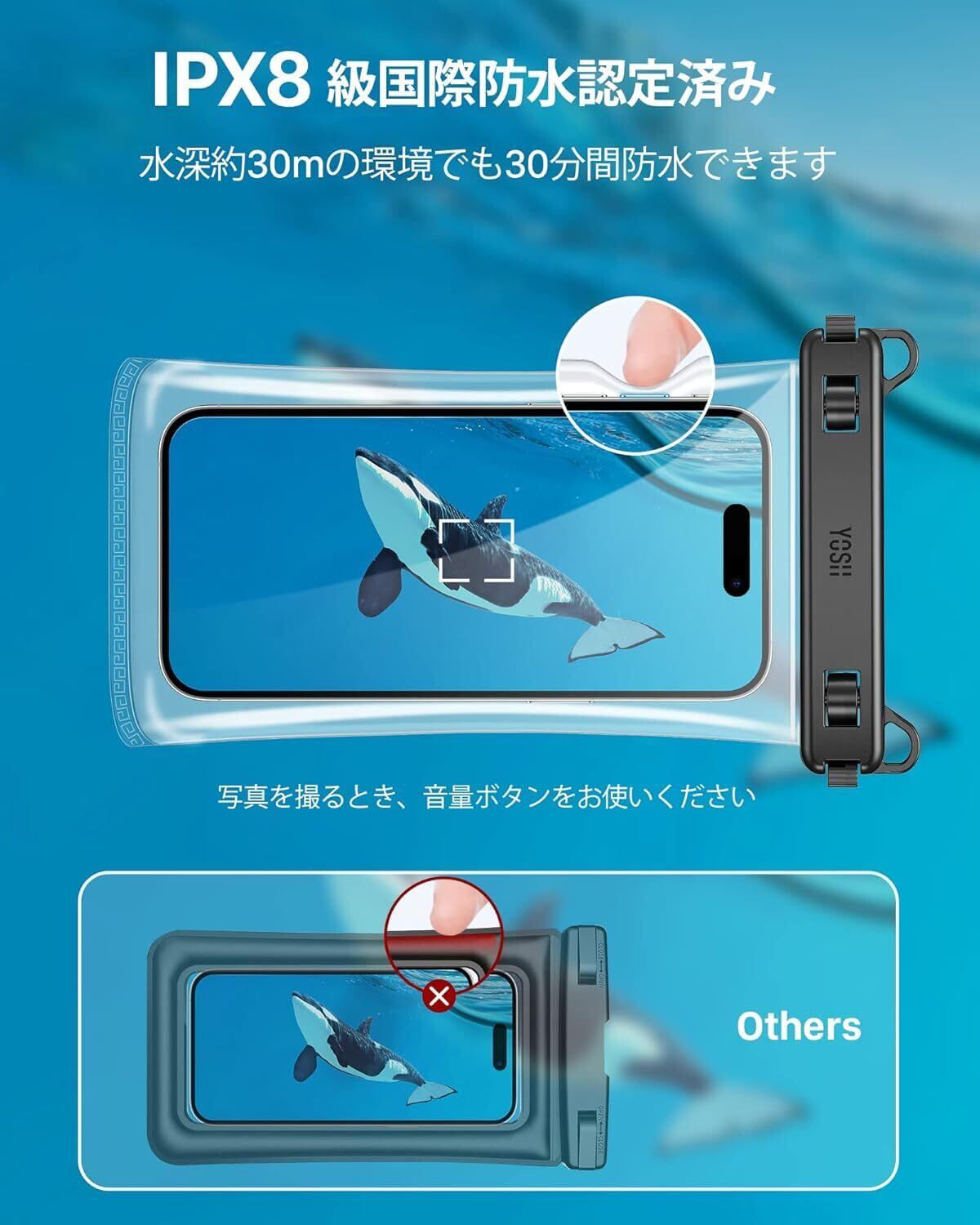 パッケージ内容:YOSH 新型TPU防水ケース×2、改良版ストラップ×2、説明カード×1