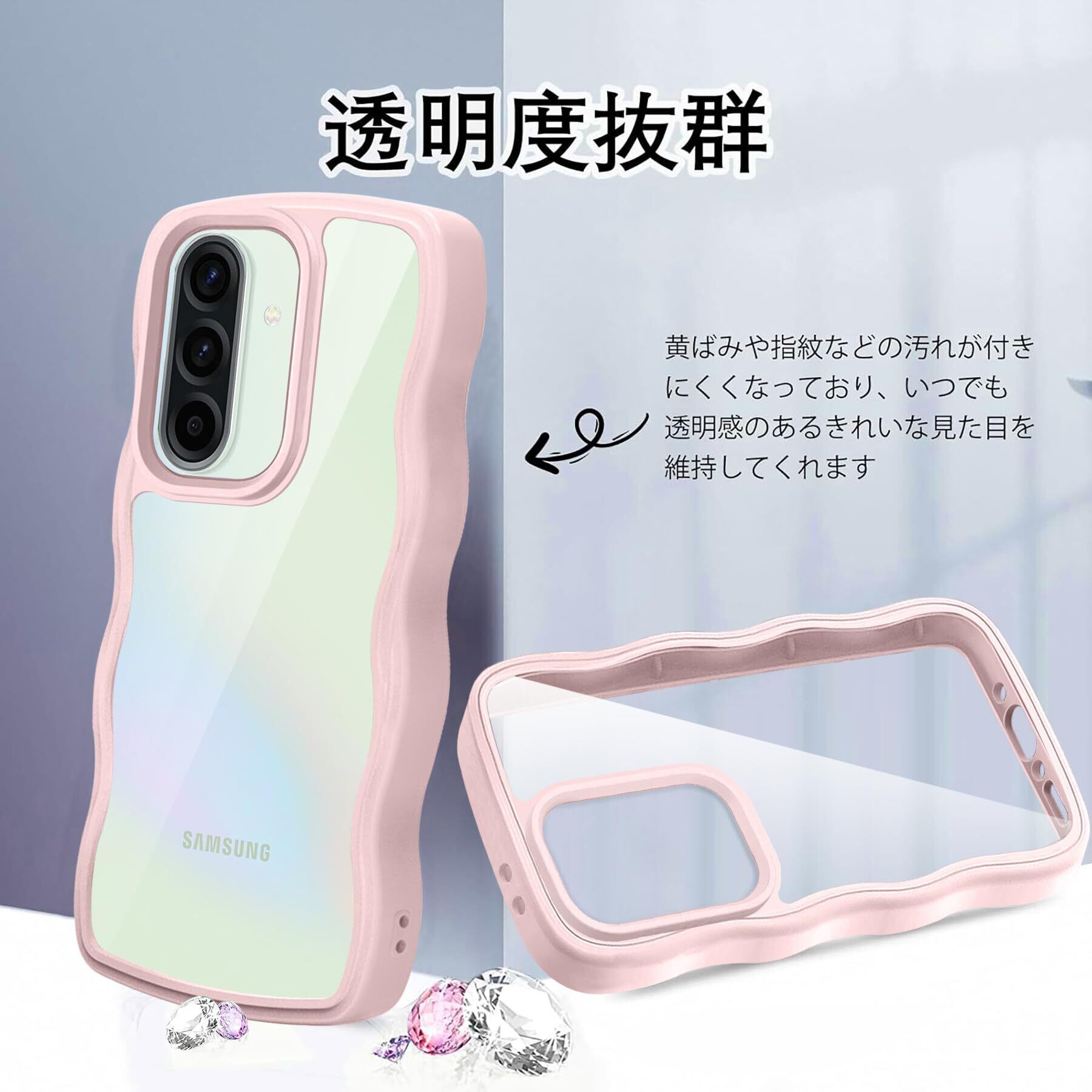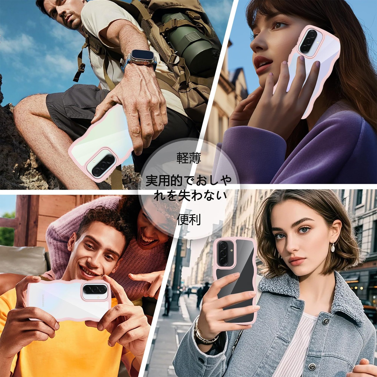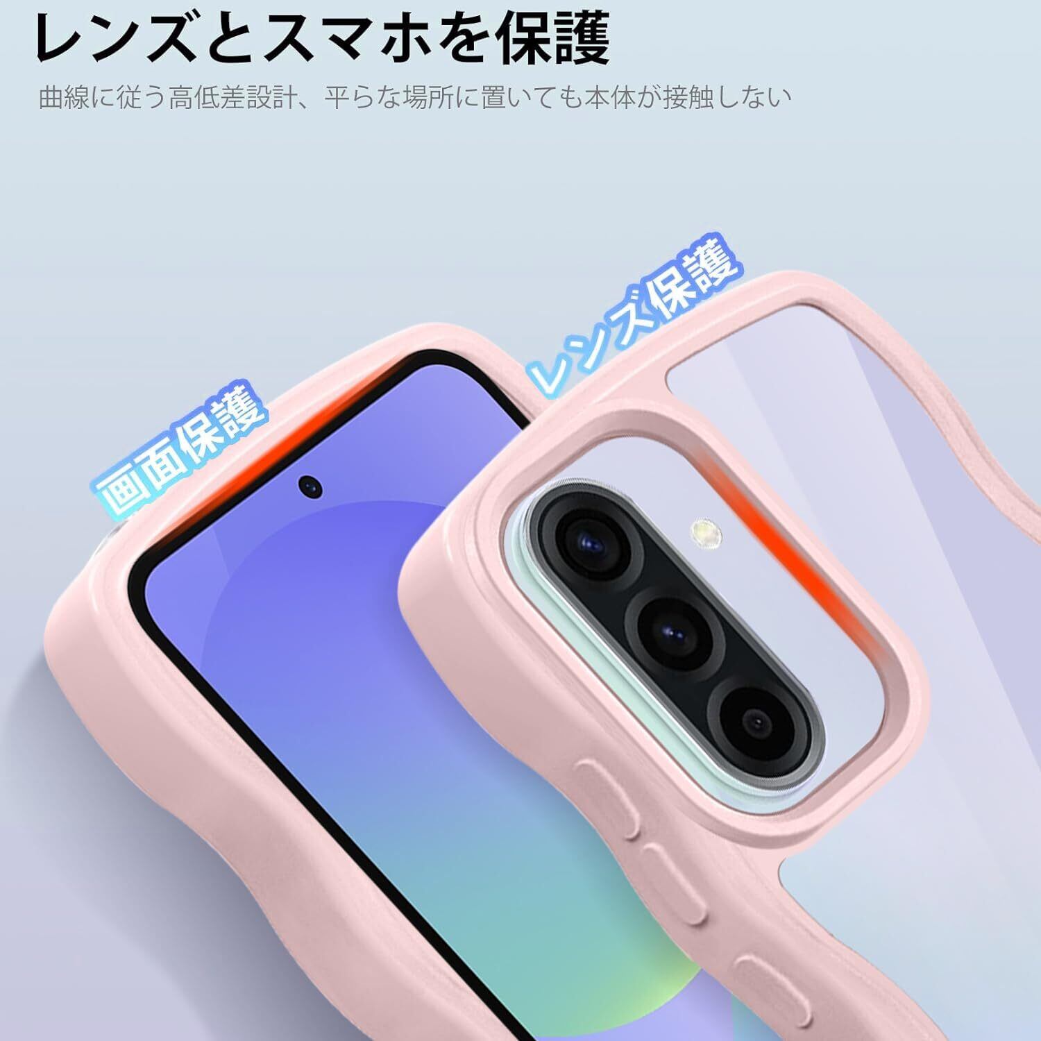 Galaxy A36 5G /A56 用 ケース/SC-54F 用 ケース クリア ウェーブ おしゃれ 韓国 かわいい 可愛い ギャラクシーA36 /A56 用 スマホケース 人気 滑り止め 薄型 軽量 耐衝撃 ストラップホール付き シリコン 透明(ピンク)