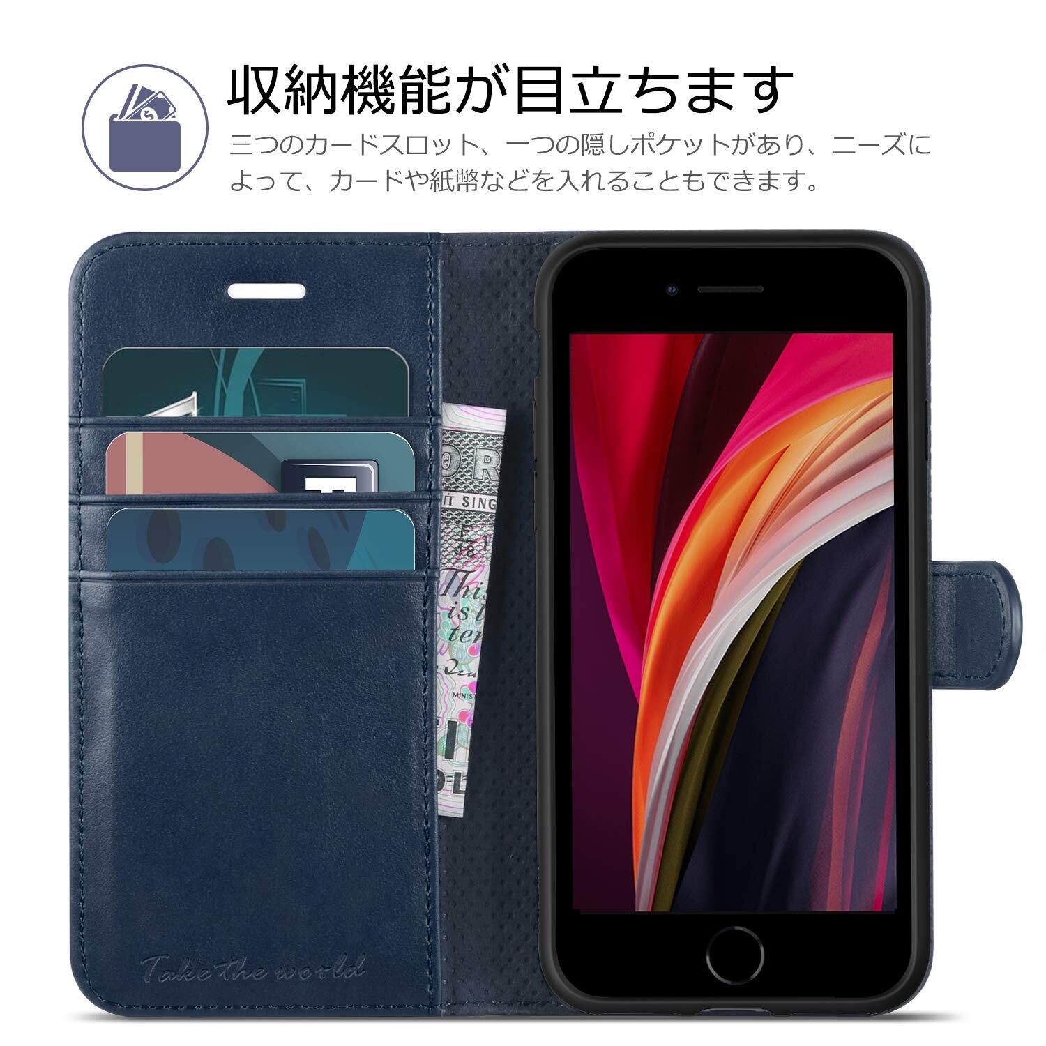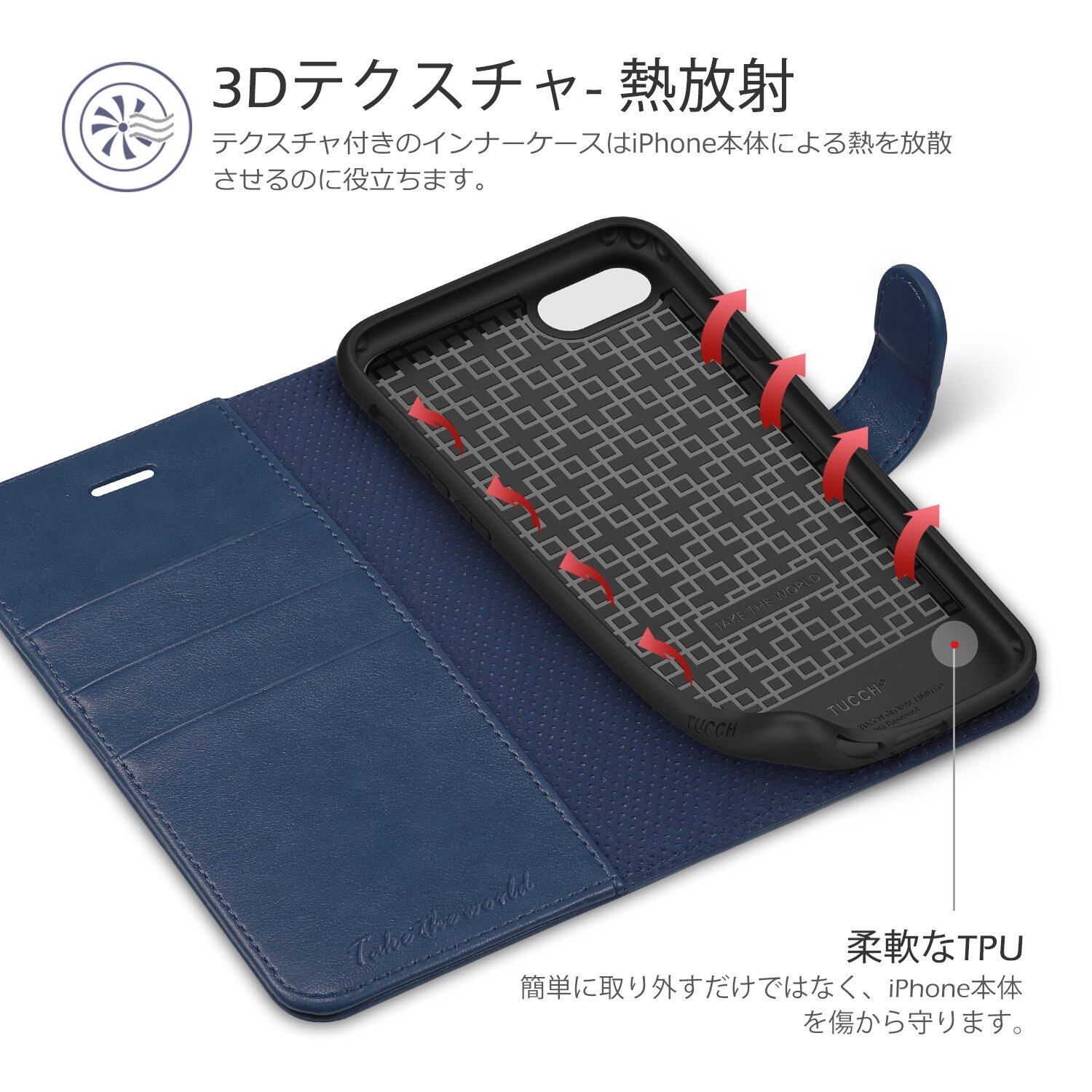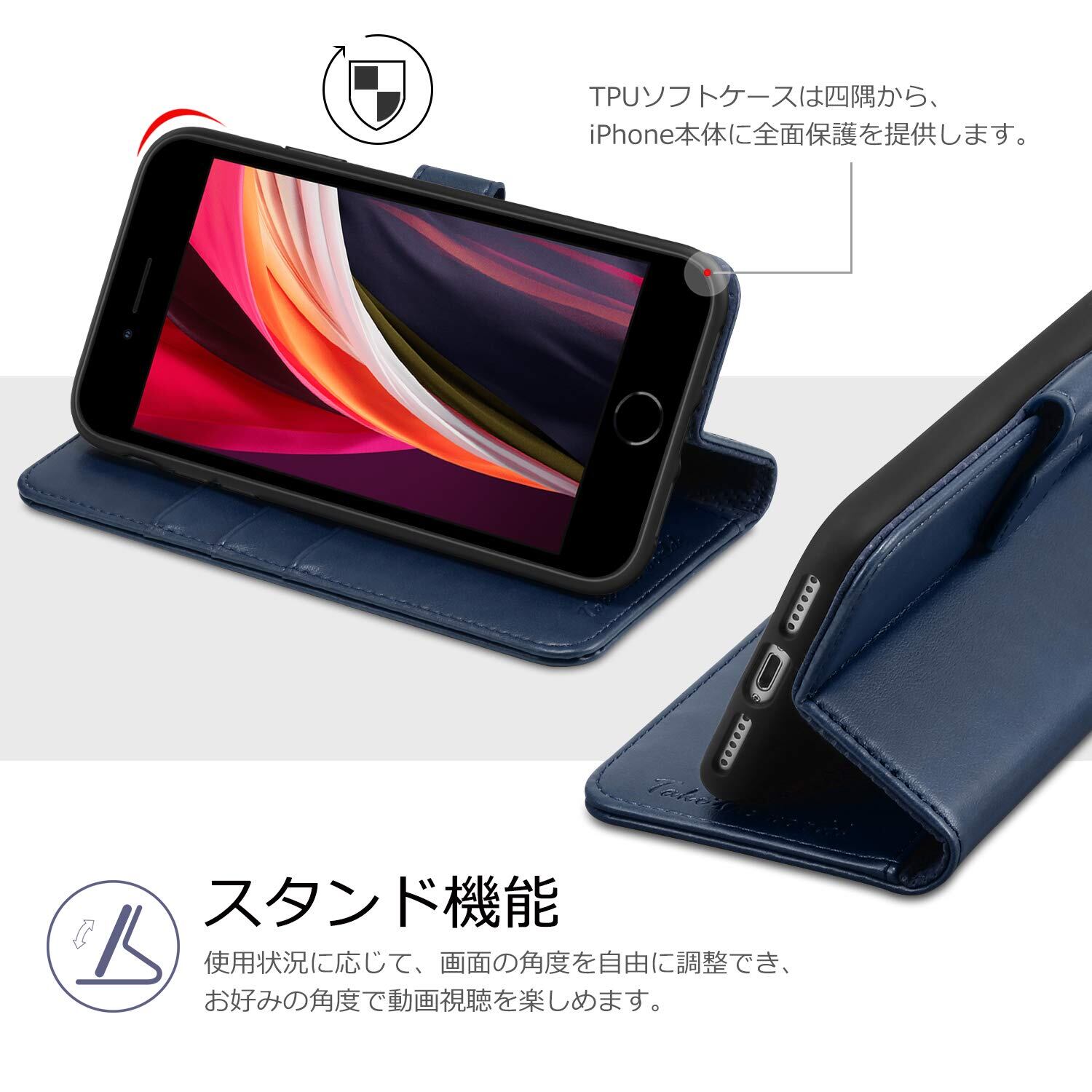 TUCCH iPhone SE 対応 ケース 第3世代 iPhone SE2 ケース(2020) iphone8 ケース iphone7 ケース 手帳型 耐衝撃 耐摩擦 PU合皮 財布型 アイフォン7手帳型カバー カード収納 マグネット スタンド機能付きiPhone se2 ケース 手帳型 iPhone7/iPhone8/iPhoneSE2/iPhoneSE3 4.7インチ対応 ダークブルー