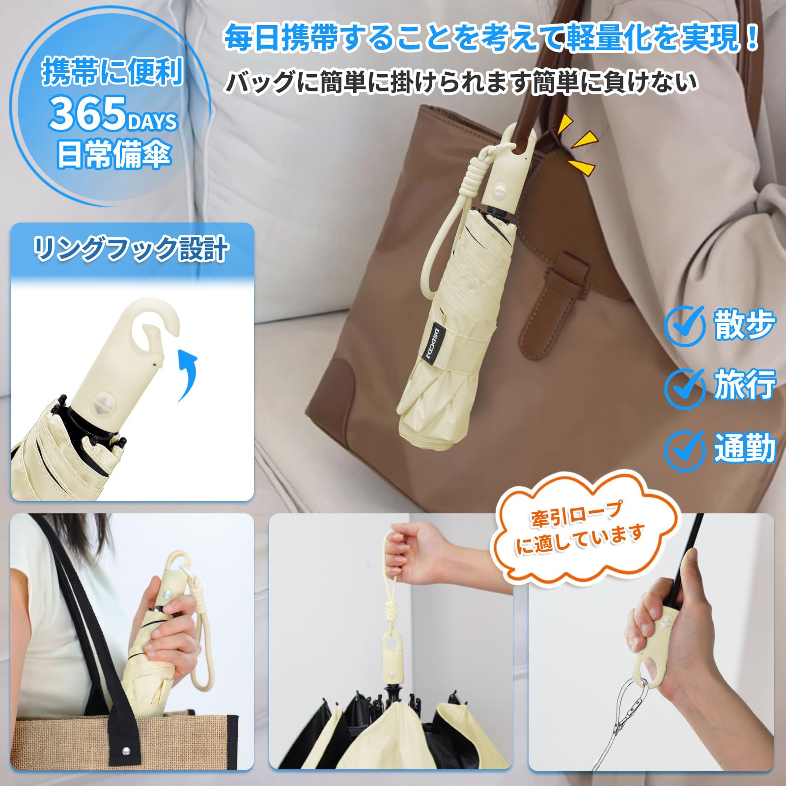 【ワンタッチ自動開閉傘&簡単に片手操作】ワンタッチ操作の自動開閉傘を採用しています。片手で簡単に操作できるため、荷物やスマートフォンを持っている場合でも簡単に傘を開閉できます。さまざまなシーンで使いやすさを実感できます。傘の開閉ボタンは厳格な品質テストを経ており、毎回の操作が正確で、優れた耐久性を備えています。