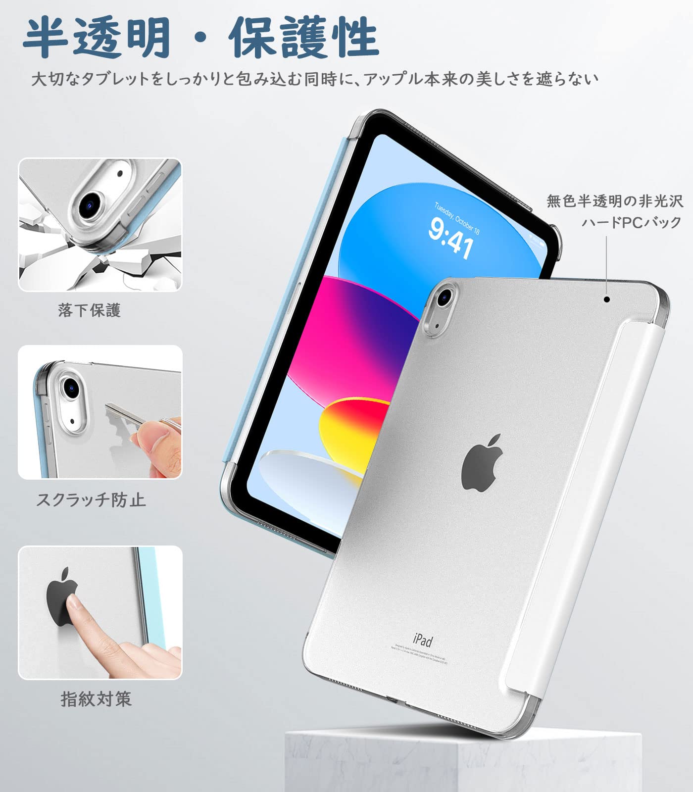 【2022最新】TiMOVO iPad 11世代(A16)ケース 11インチ iPad 10世代 ケース 10.9インチ ipad第10世代 カバー ハードカバー PUレーザー 開閉式 三つ折り スタンド マグネット オートスリープ機能 耐衝撃 軽量 落下防止 精密設計 着脱簡単 ipad第11世代ケース 半透明 SkyBlue | nico3588