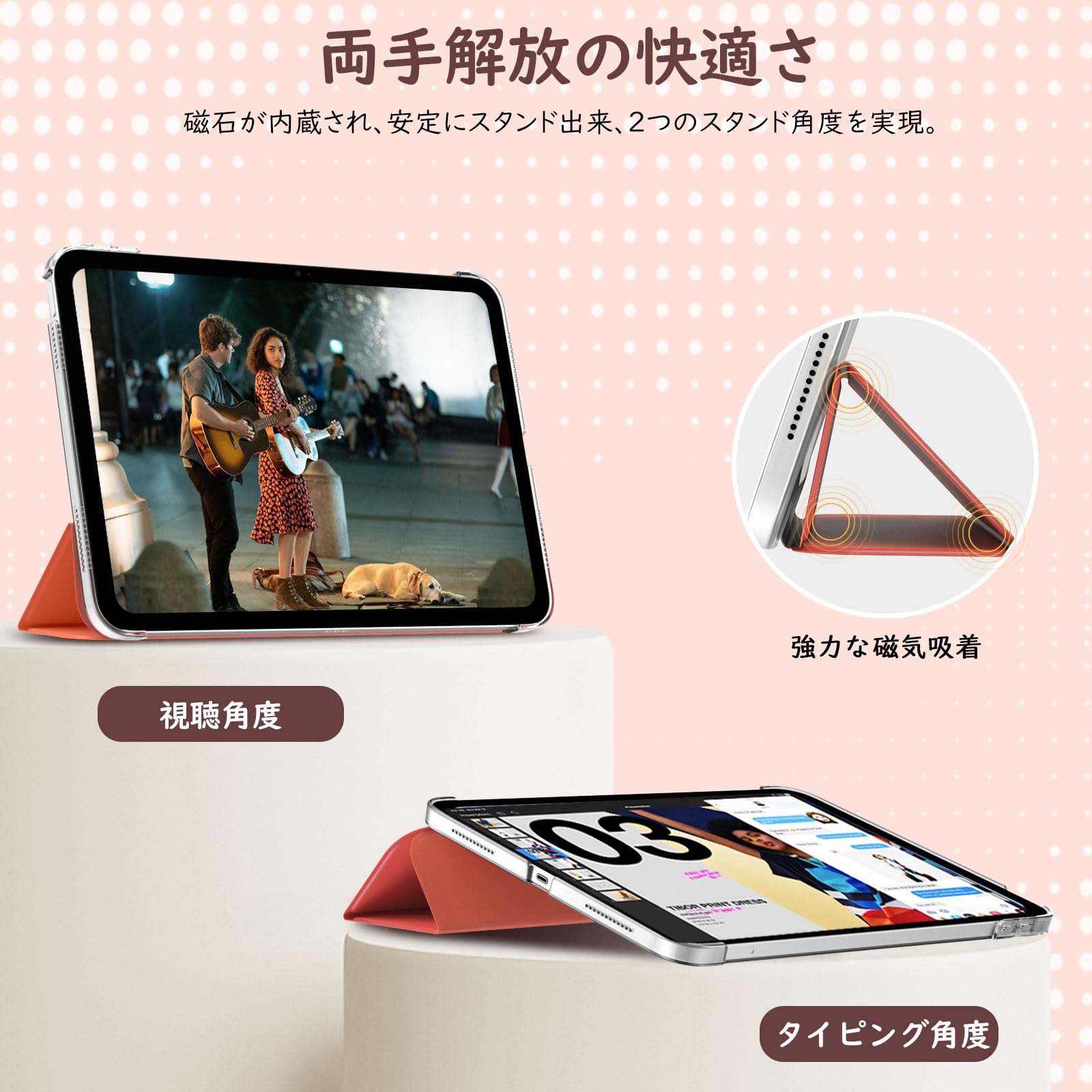 【特価セール】TiMOVO iPad 11世代(A16)ケース 11インチ iPad 10世代 ケース 10.9インチ ipad第10世代 カバー ハードカバー PUレーザー 開閉式 三つ折り スタンド マグネット オートスリープ機能 耐衝撃 軽量 落下防止 精密設計 着脱簡単 ipad第11世代ケース 半透明 珊瑚オレンジ | nico3588