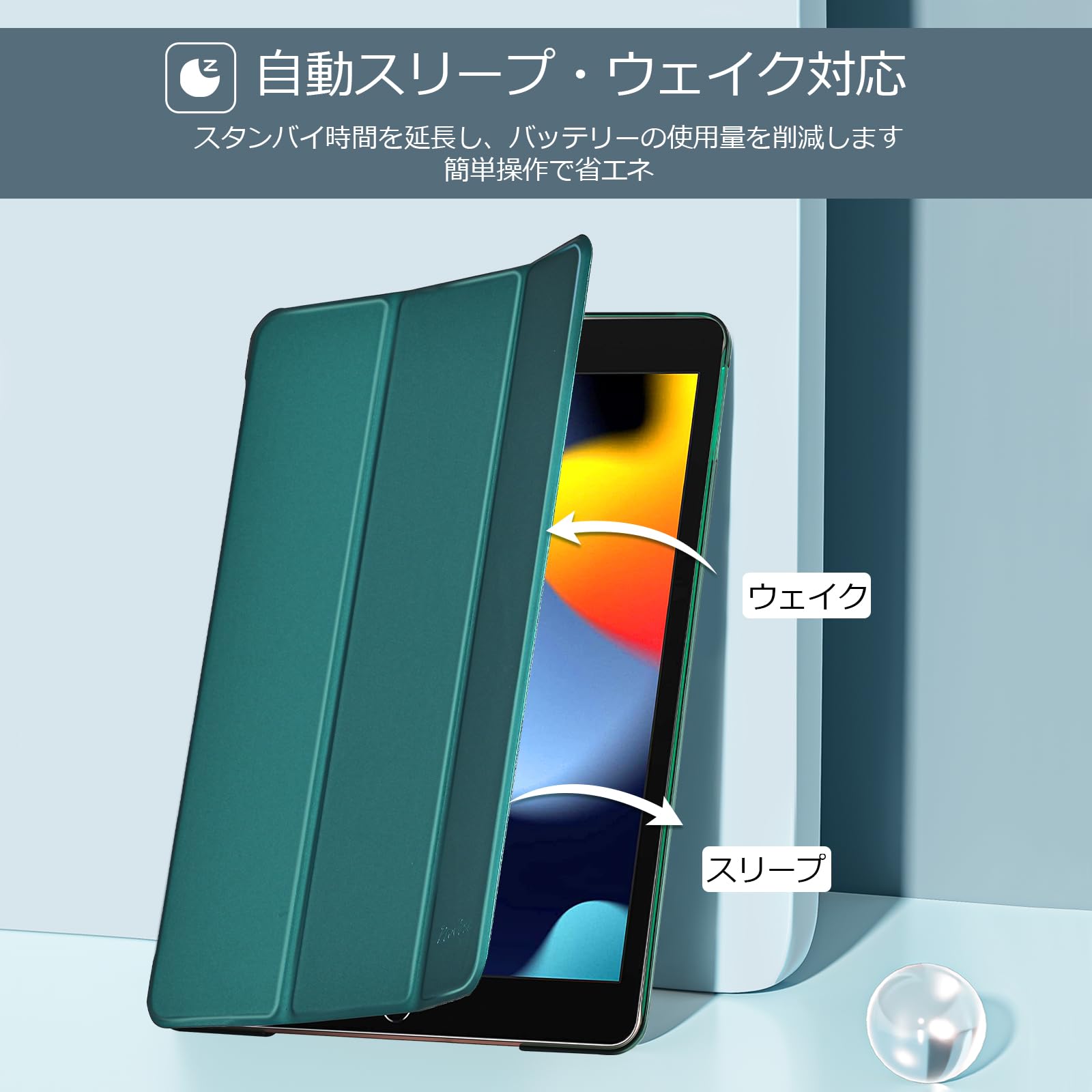 オートスリープ/ウェイクに対応します;マグネットによりカバーの開閉も容易です。