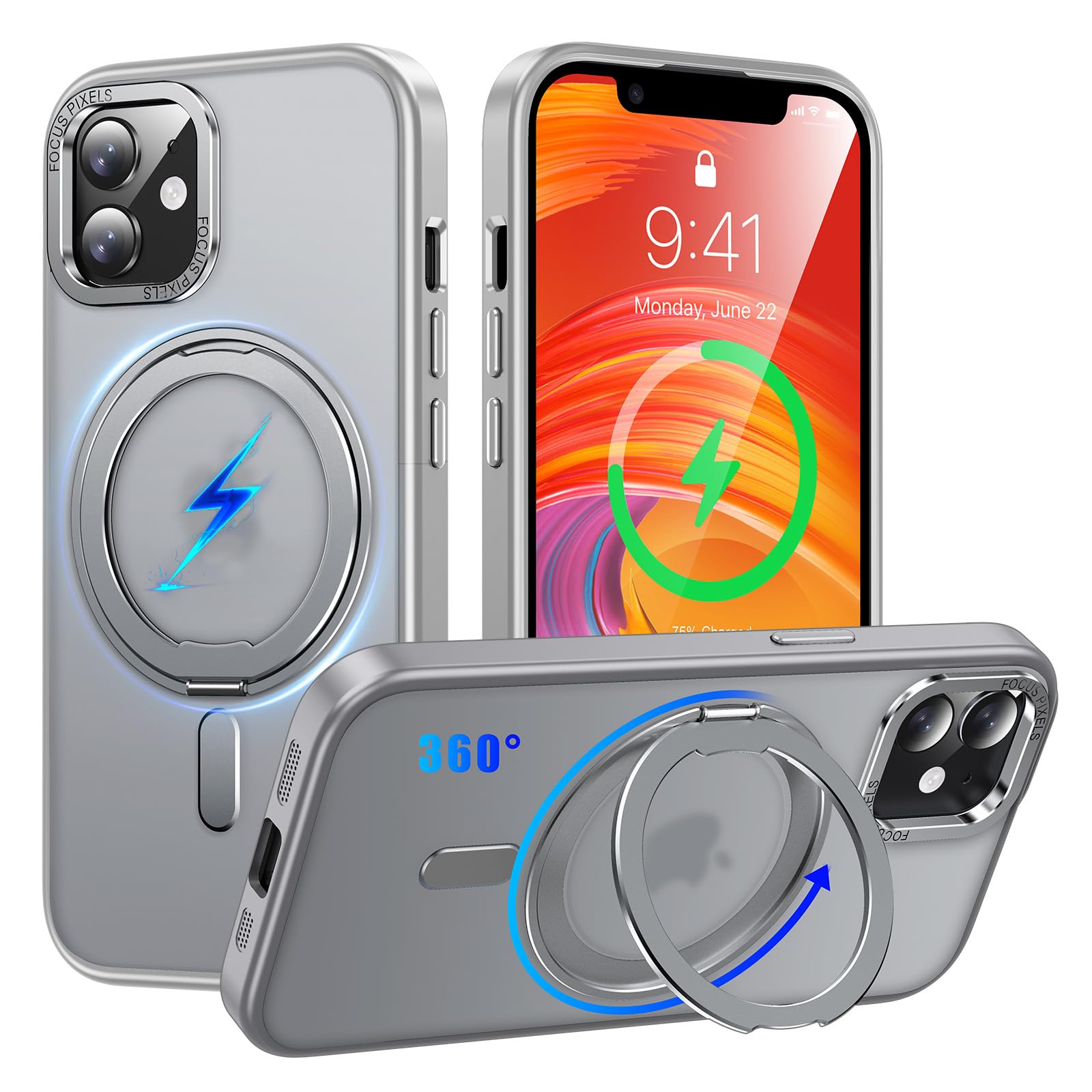 iPhone 11 適用 ケース Magsafe対応 アイフォン11 カバー 360°回転スタンド Uovon スマホケース アイホン 11 携帯ケース ワイヤレス充電 車載ホルダー 対応 ストラップ穴付き 半透明 指紋防止 黄变防止 ・ ナチュラル