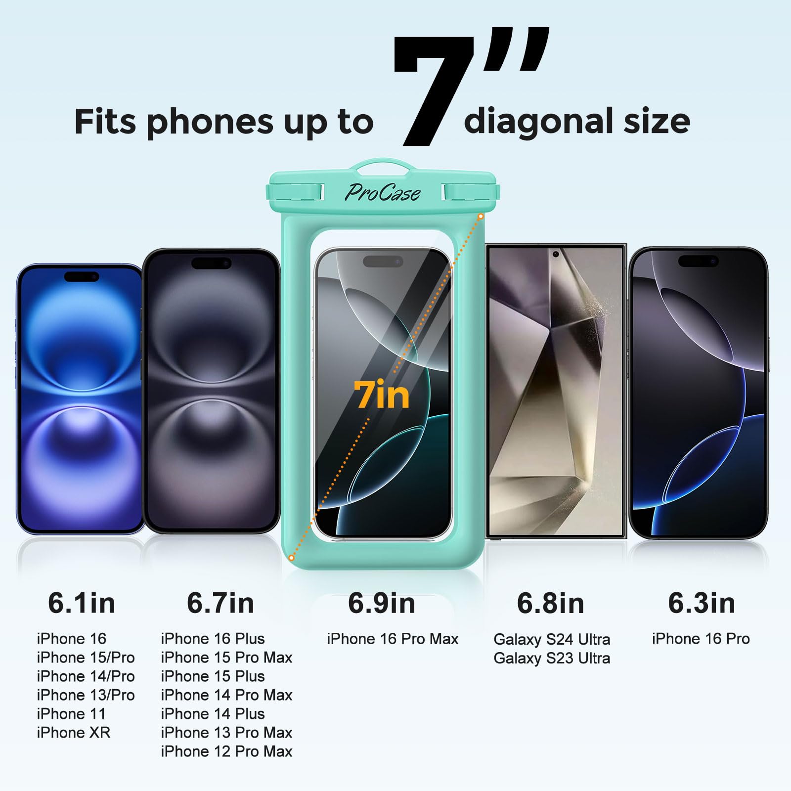 ProCase [2点] スマホ防水ケース 、[フロート式]ドライバッグ IPX8認定 完全保護 密封、水中撮影 お風呂 温泉 釣り 海に適用 最大7.0インチ対応:iPhone 16 15 14 13 12 Mini Pro MaxHuawei Xperia android - ブルー・グリーン