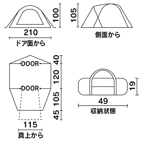 【使用サイズ】インナーテント/約210×120×100(h)cm 収納時:約φ19 x 49cm(重量:4Kg) バイクツーリングなどでも積みやすいコンパクトサイズとなっています。