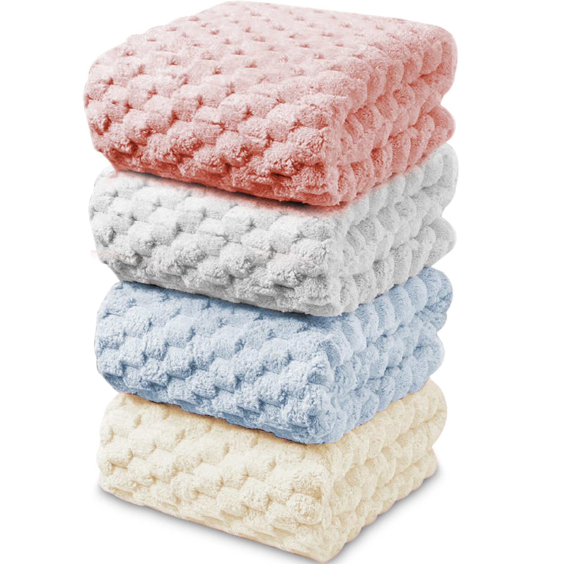 AYO バスタオル 4色4枚セット 60*120cm マイクロファイバー 立体ポコポコ特殊織り ホテル仕様 ふかふか 高吸水 耐久性 毛羽落ち少ない(さくらピンク+ライトグレー+ベビーブルー+クリーム)