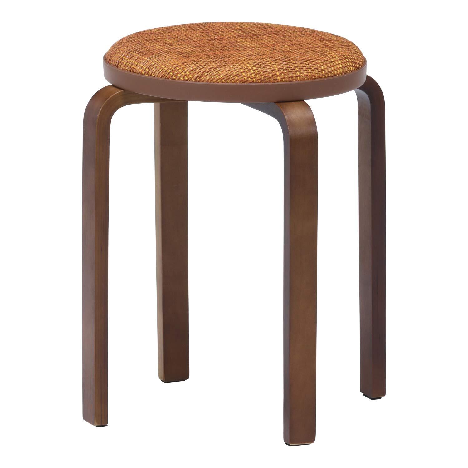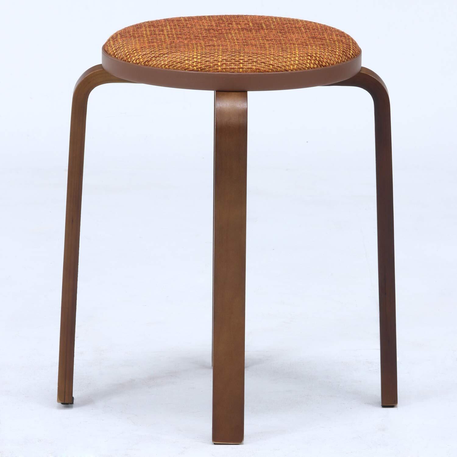 不二貿易 曲木スツール スタッキングチェア 幅32×奥行32×高さ47cm イエロー ブラウン ファブリック コンパクト 組立商品 14544