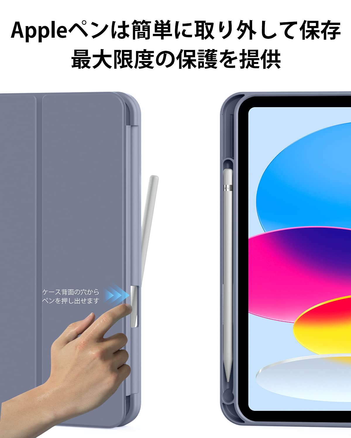 【便利なペンホルダー】Apple Pencilペン収納、便利なペンホルダーが付き、収納や持ち運びに便利です、ペンシル取り出し用の穴があるので簡単にペンを取り出す事ができます。いつでもどこでもiPadを快適に使えます。 アップルペンシル と 付属品 の紛失を防止して、安心して持ち運ぶ事ができます。