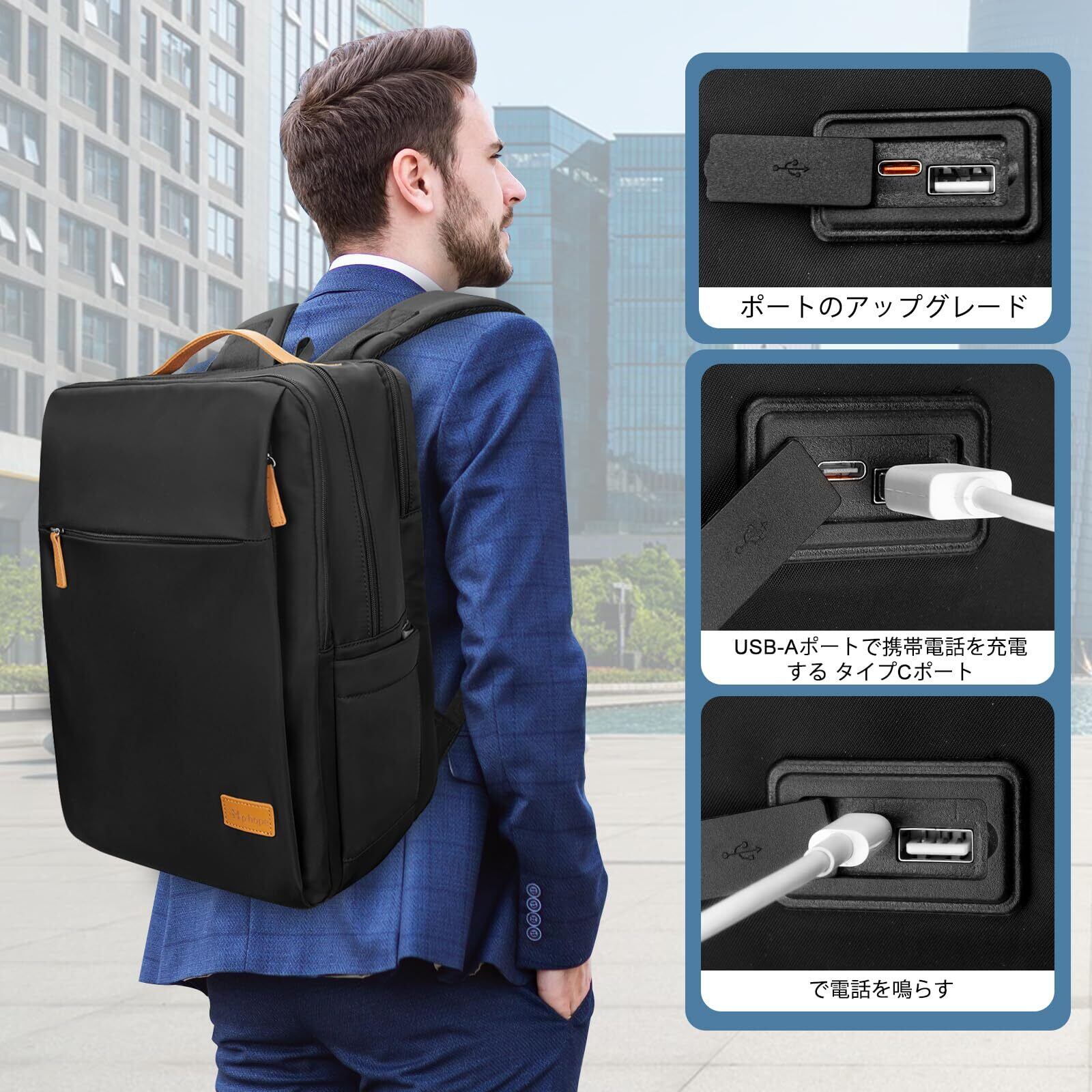 [Hp hope] ビジネスリュック 防水 大容量 軽量 男女兼用 PC バッグ USB充電ポート付き ファッションリュック 耐衝撃 通勤 通学 旅行 サイクリングに最適 15.6インチ