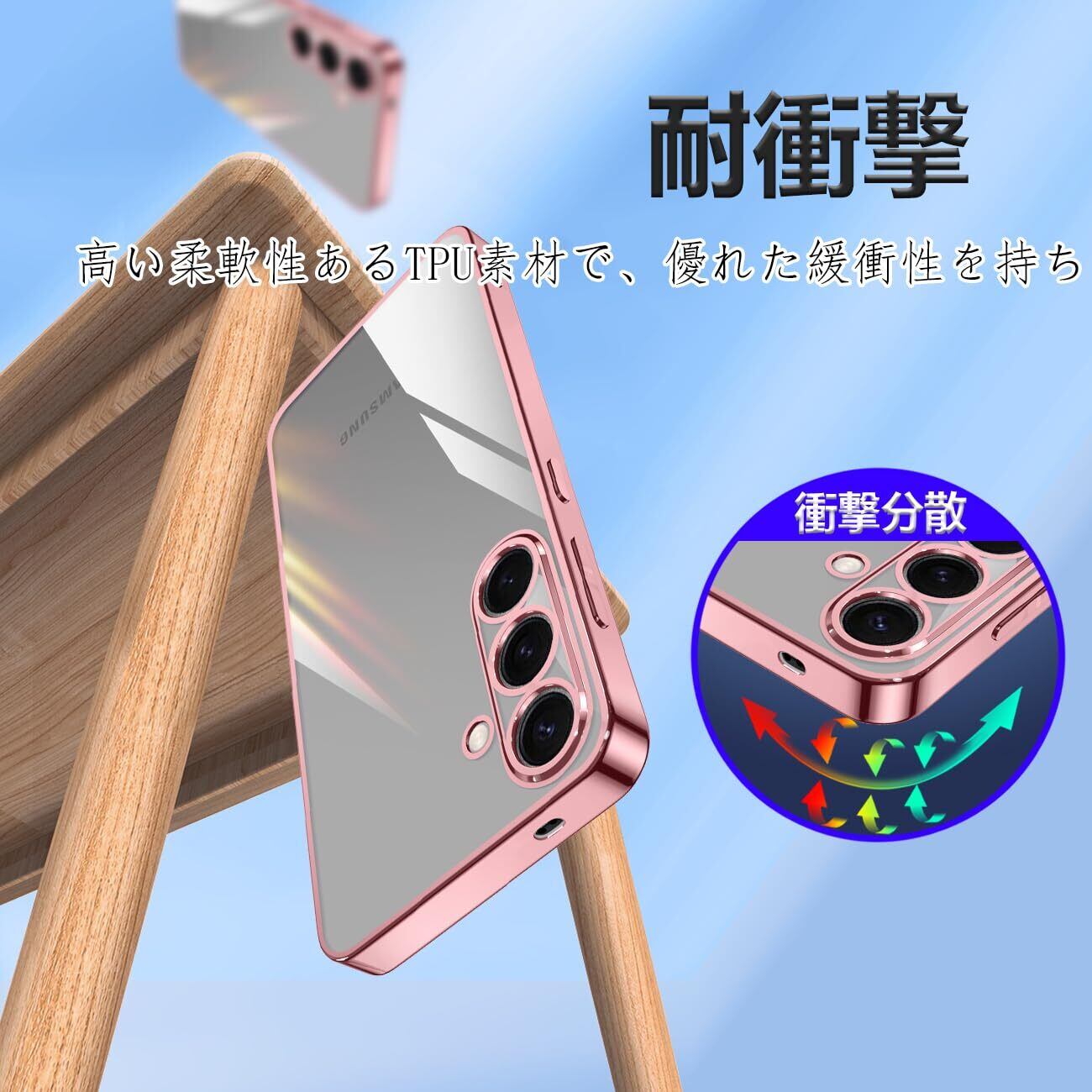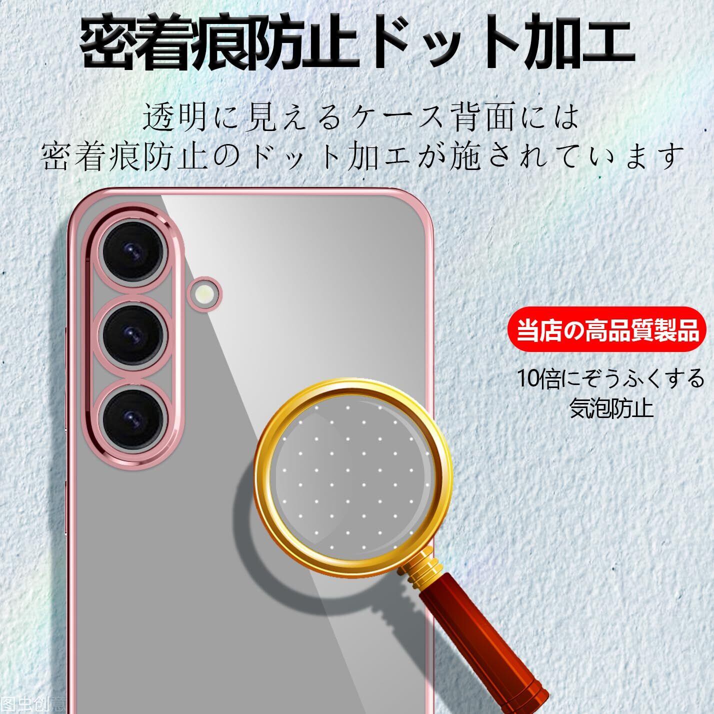 Galaxy S25 ケース クリア SC-51F 耐衝撃 TPU レンズ保護 ソフト 透明 メッキ加工 ワイヤレス充電 ギャラクシーS25 スマホケース ラップホール付き (ローズゴールド)