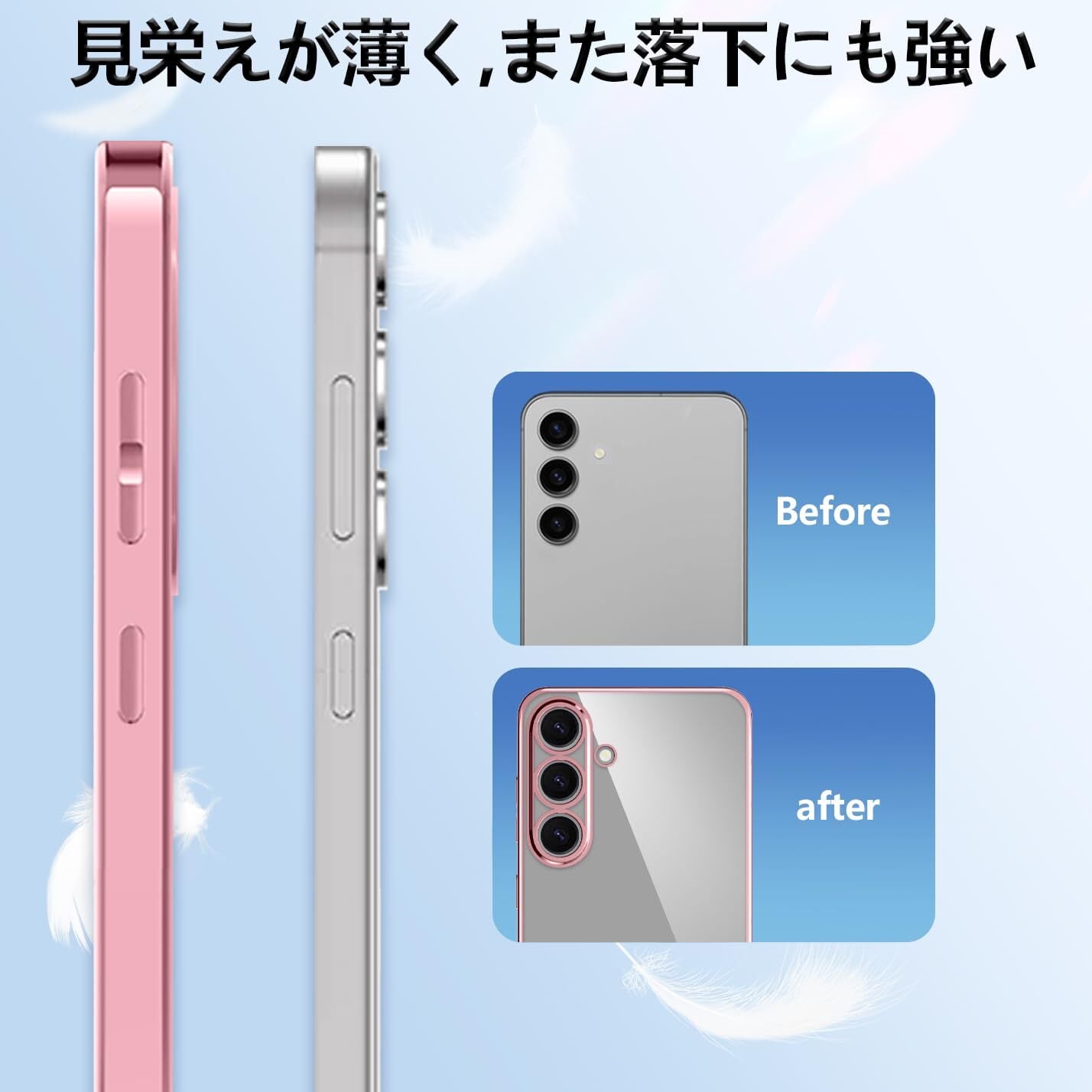 【オシャレ・シンプル】クリアな背面高い透明感を持ち、ケース四隅とボタン部分メッキ加工を応用し、シンプルで高級感溢れて、トレンディなメッキデザインは精緻されたライフスタイルを示します。超軽量薄型GALAXY S25本体とピッタリ密着しており、長く持っても手が疲れる感じもありません。