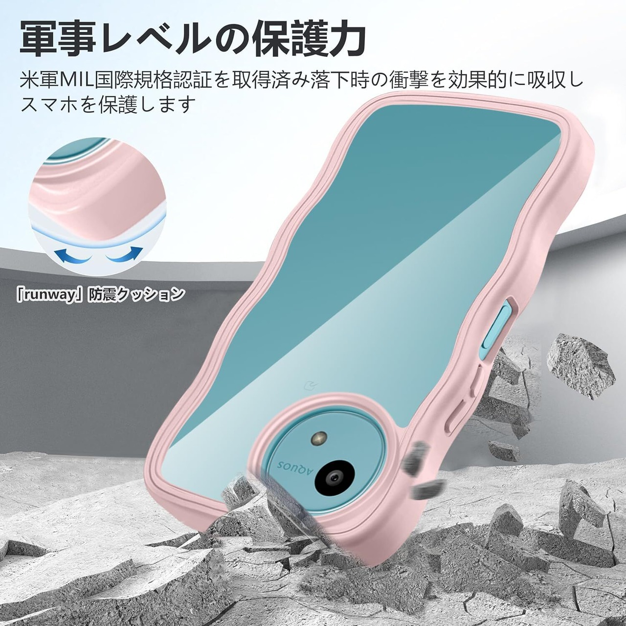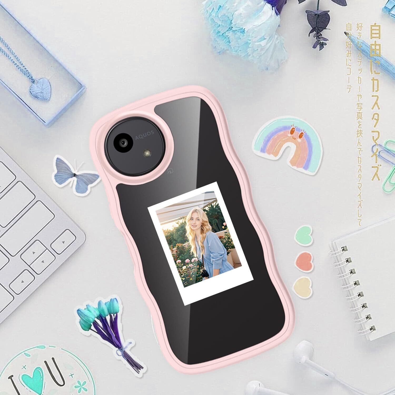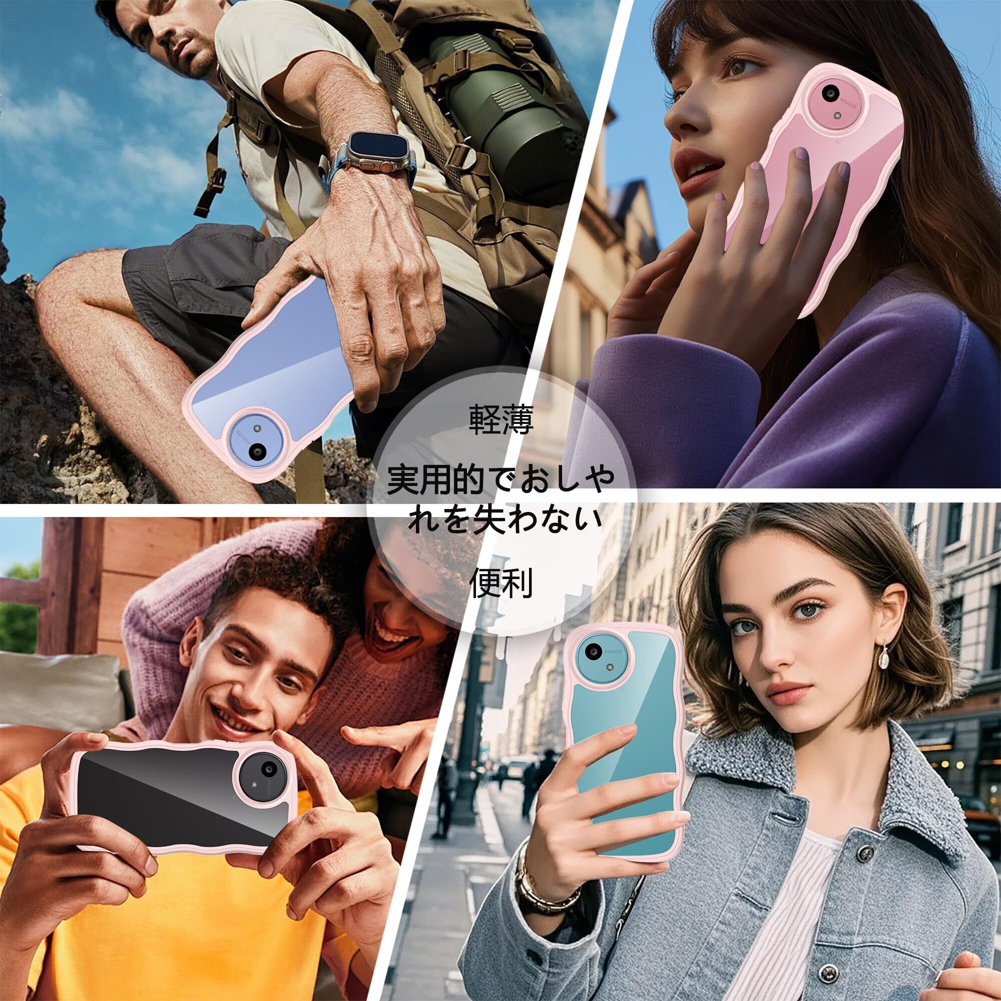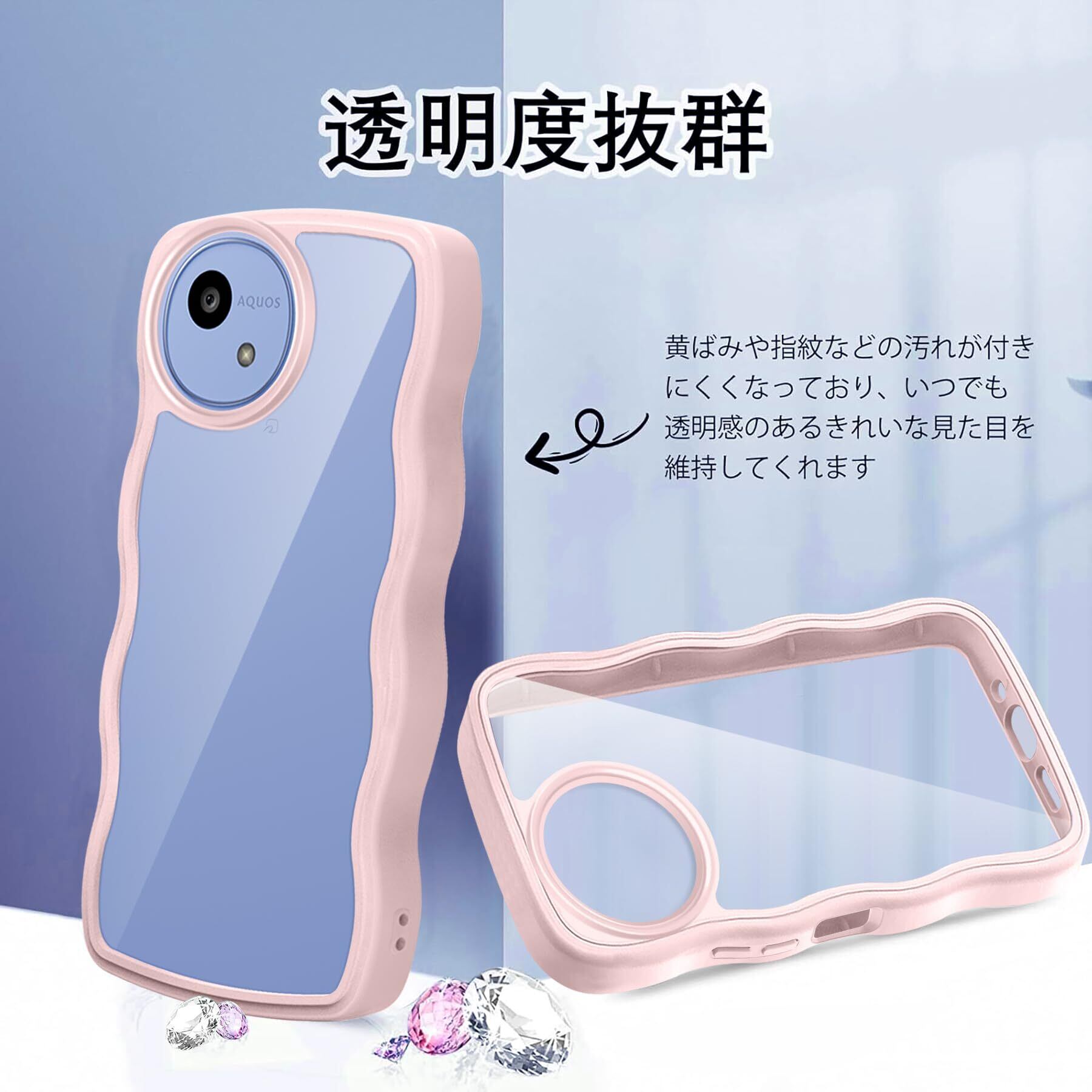 AQUOS wish5 SH-52F ケース クリア ウェーブ おしゃれ 韓国 かわいい 可愛い アクオス Wish5 スマホケース 人気 シンプル 滑り止め 薄型 軽量 耐衝撃 指紋防止 レンズ保護 ストラップホール付き シリコン 透明(ピンク)