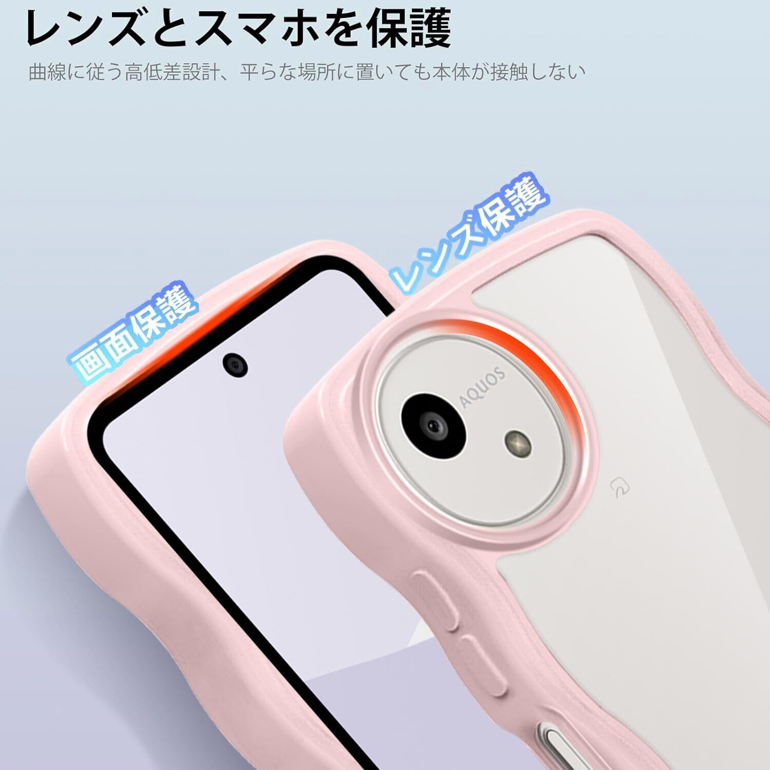 【特価セール】AQUOS wish5 SH-52F ケース クリア ウェーブ おしゃれ 韓国 かわいい 可愛い アクオス Wish5 スマホケース 人気 シンプル 滑り止め 薄型 軽量 耐衝撃 指紋防止 レンズ保護 ストラップホール付き シリコン 透明(ピンク)