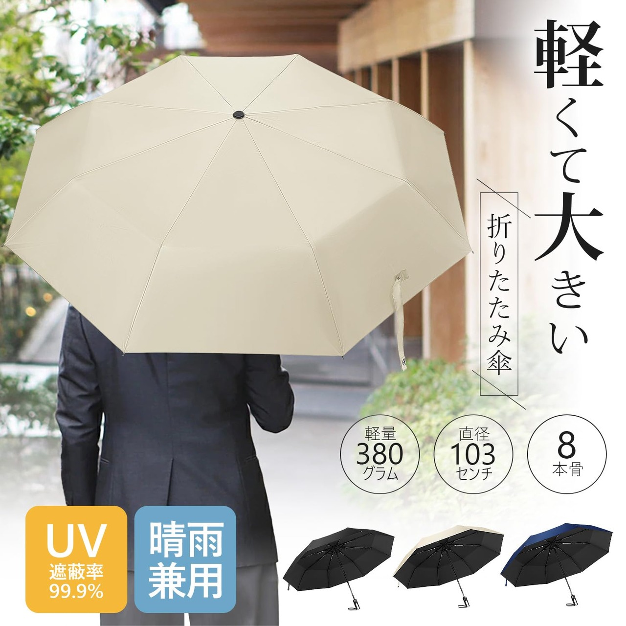 Sintu 折りたたみ傘 ワンタッチ自動開閉 大きいサイズ 軽量 【撥水加工×紫外線防止 晴雨兼用】 おりたたみ傘 メンズ 傘 折り畳み傘 丈夫 耐風 撥水 コンパクト 梅雨対策 日傘 UVカット 紫外線遮蔽 男女兼用 8本骨 収納ポーチ付き 直径103cm/軽量380g