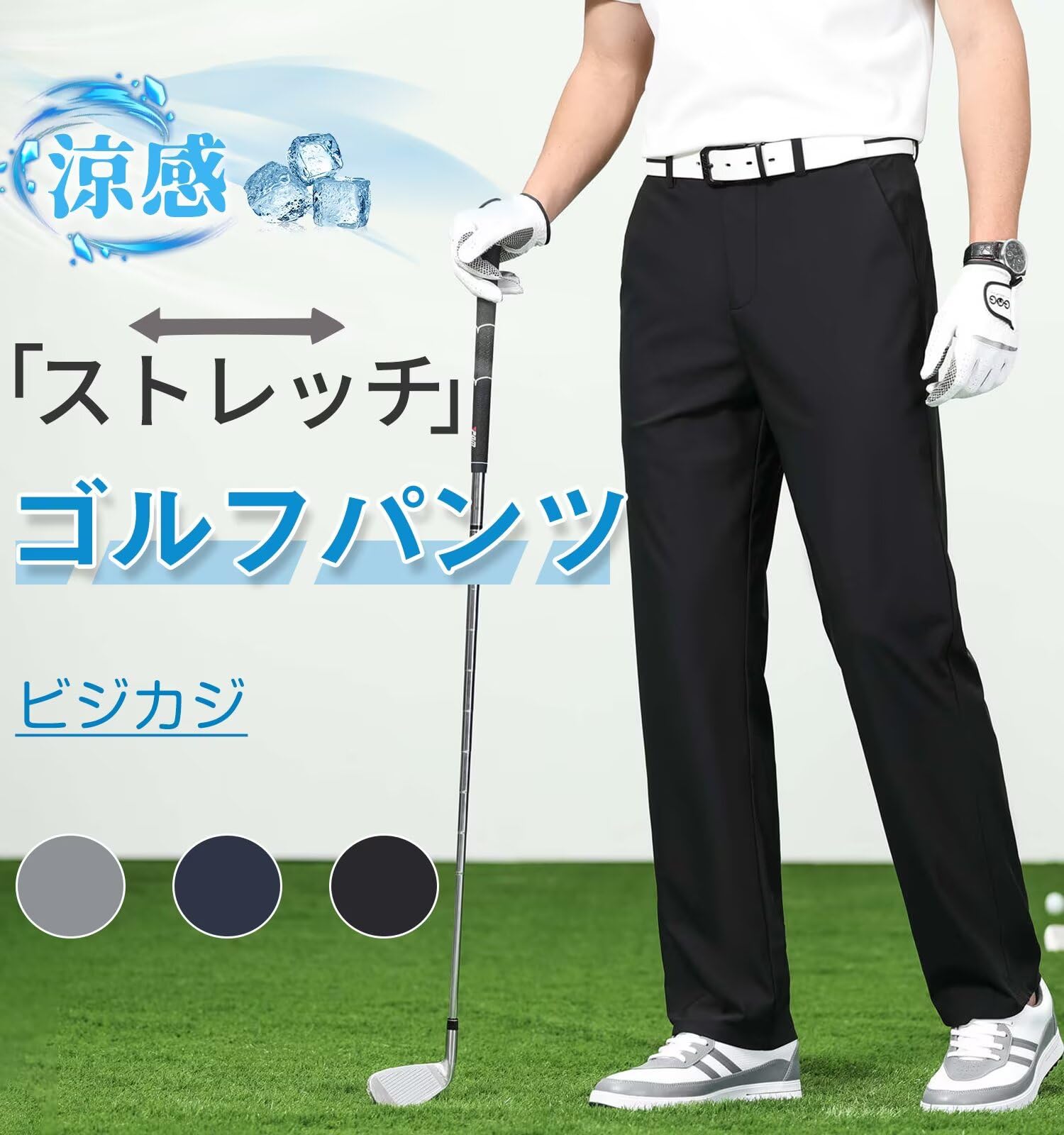 [Kayiyasu] ゴルフパンツ メンズ 接触冷感 超伸縮 UVカット スラックス アイスシルク ストレッチ 通気 ビジカジ カジュアル ビジネスパンツ 春 夏 軽量