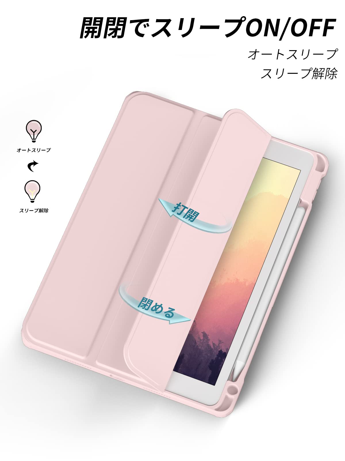 【材料・透明バックカバー】 ケースの表面はPUレザー素材を利用して、軽量、超薄を備えます。ポリカーボネート素材を採用している透明バックカバーは汚れや傷つけなどを防止するだけでなく、iPad本体の色と美しさも活かせます。透明バックカバーの枠は柔軟な TPUを採用して、取り付けも簡単にできます。フロントカバー内部材質はマイクロファイバーで、摩擦によって発生する傷を抑え、液晶画面を保護しきれいに保ちます。(注:透明部分の表裏の保護フィルムを剥がしてください)