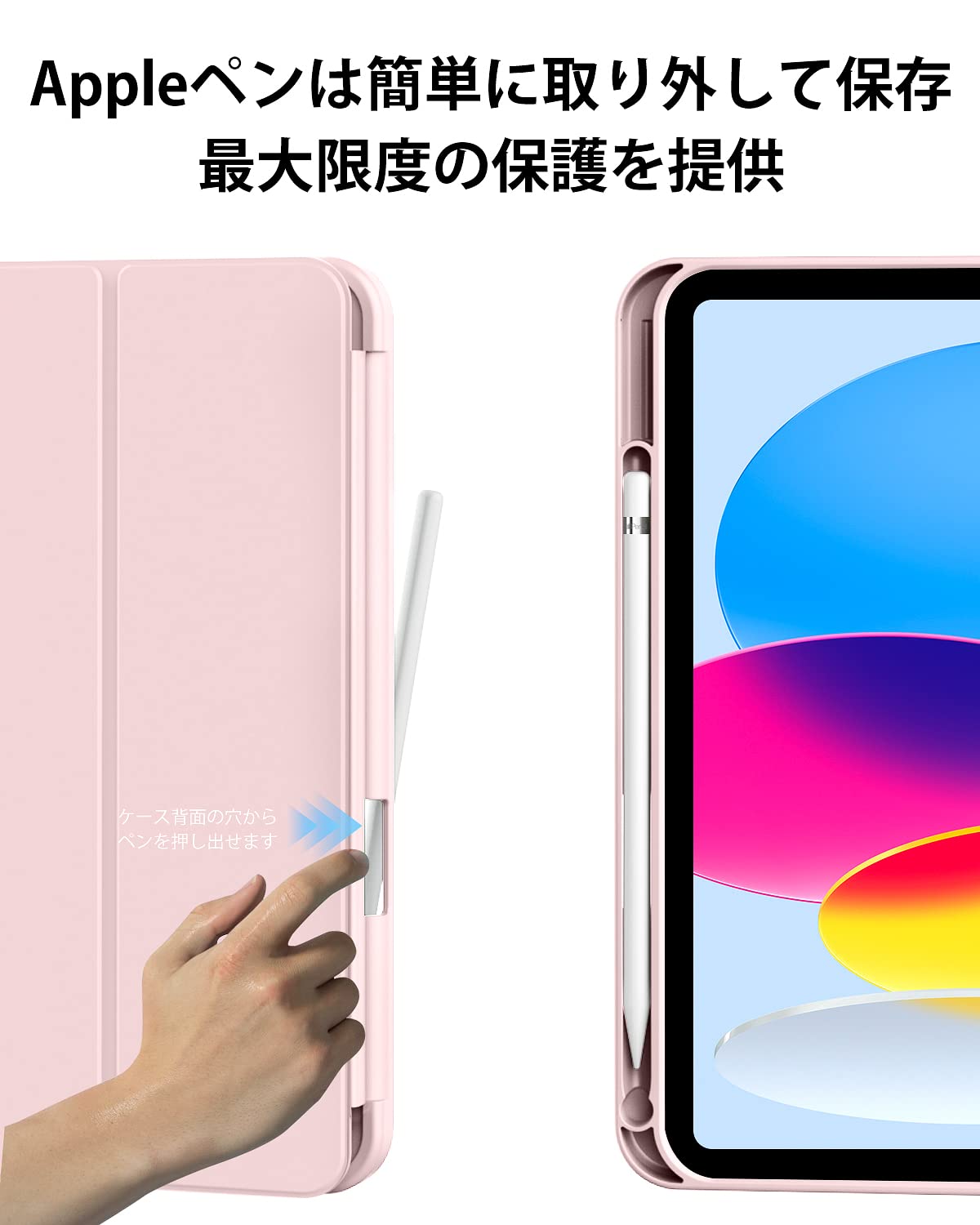【便利なペンホルダー】Apple Pencilペン収納、便利なペンホルダーが付き、収納や持ち運びに便利です、ペンシル取り出し用の穴があるので簡単にペンを取り出す事ができます。いつでもどこでもiPadを快適に使えます。 アップルペンシル と 付属品 の紛失を防止して、安心して持ち運ぶ事ができます。