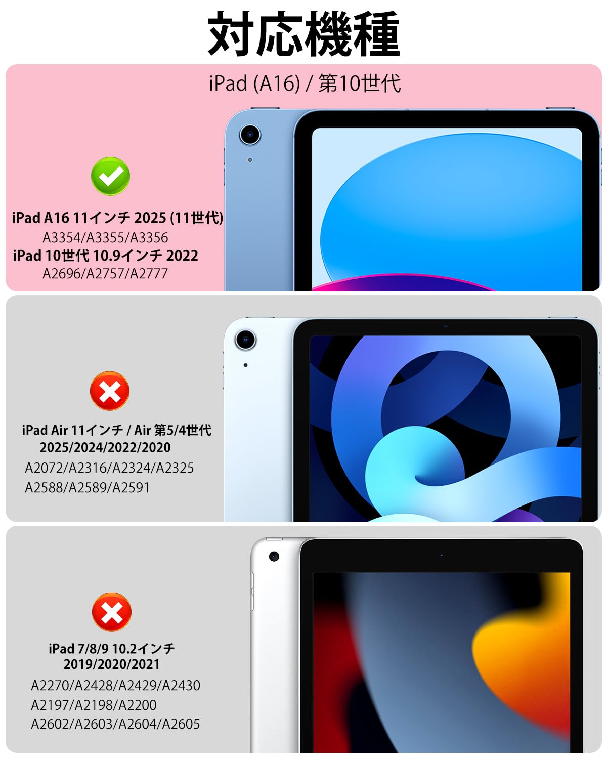 【対応機種】 iPad 11世代 (A16) 11インチ 2025、iPad 第10世代 10.9インチ 2022(モデル番号:A2696/A2757/A2777) 専用スマートケース。(ご注意:iPadの他のモデルには対応していません、ご注文の際に、 お手元機種の背面にあるモデル番号を確認をお願い致します。)