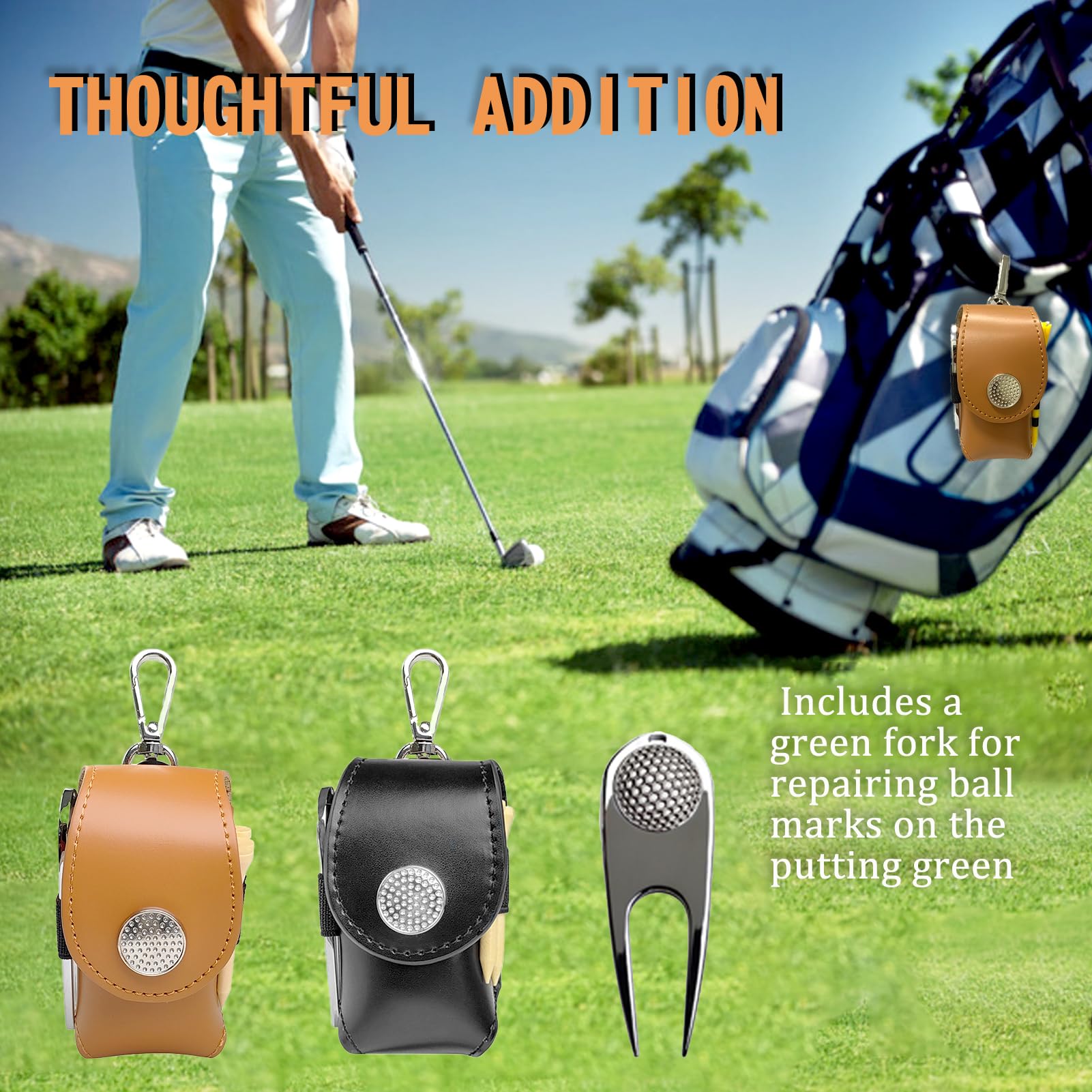ゴルフボールケース ゴルフボールポーチ 腰 ベルト 簡単装着可能 マグネット蓋 開閉便利 ゴルフボール2個収納 ゴルフティー50mm·70mm·90mm各3本付き グリーンフォーク付き