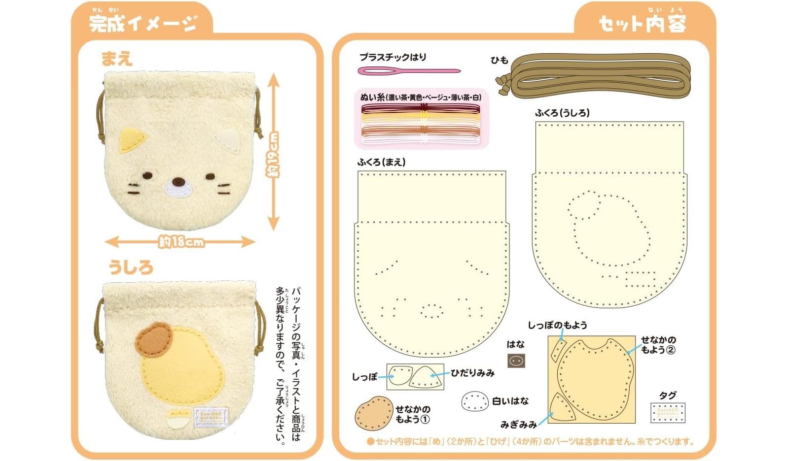 尾上萬(Onoeman) はじめての ソーイングキット きんちゃく すみっコぐらし ねこ OM-023251