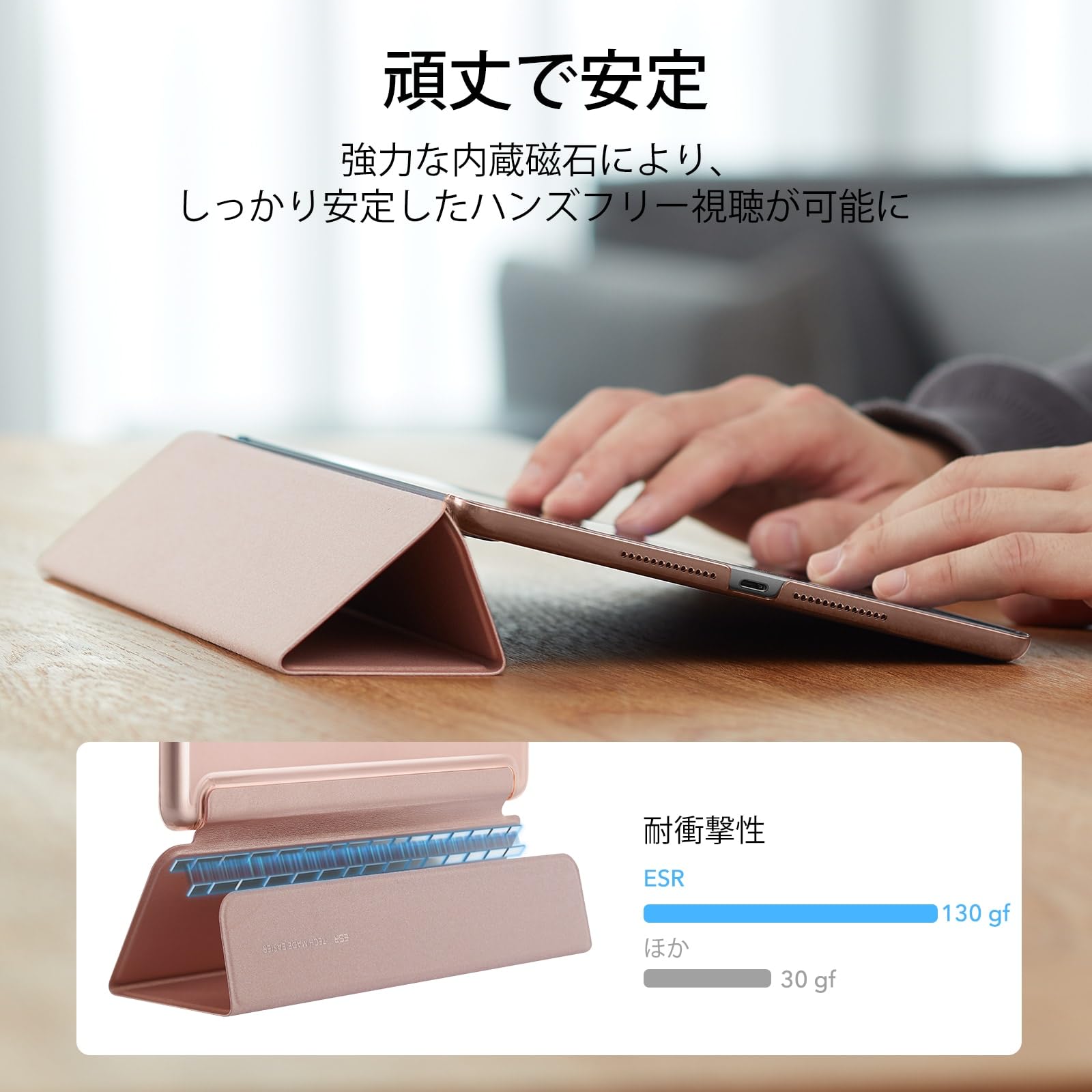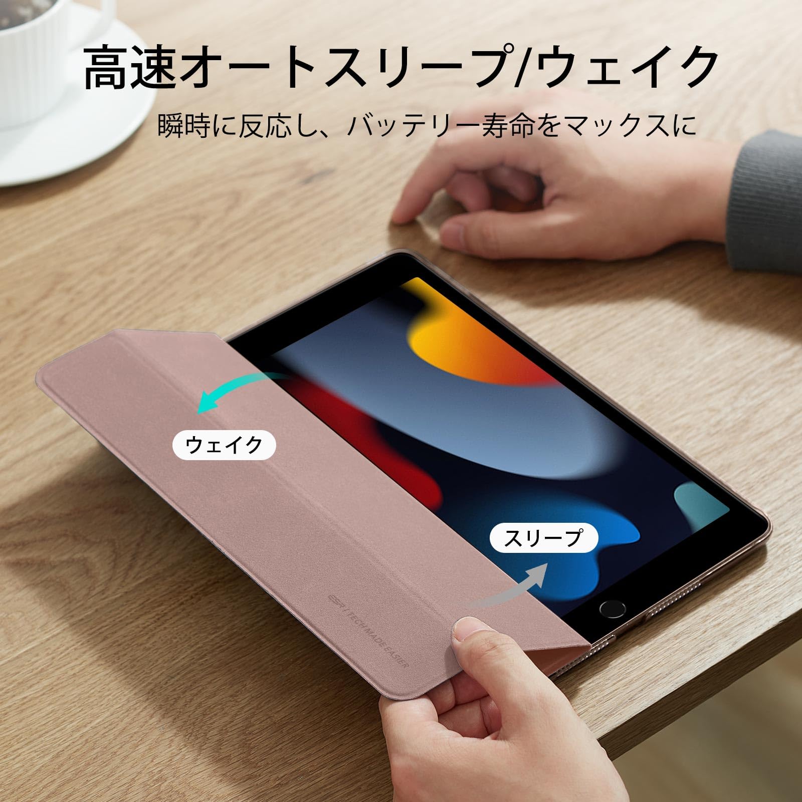 ESR iPad 9世代 ケース ipad カバー 第9/8/7世代通用 (2021/2020/2019モデル) 10.2インチ 半透明 指紋防止 三つ折りスタンド オートスリープ/ウェイク機能 薄型 軽量 傷防止 耐衝撃 ハードカバー ローズゴールド