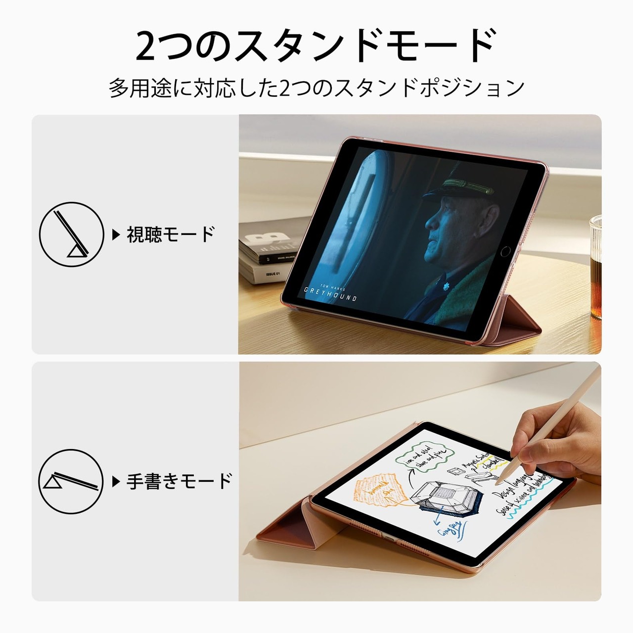 【人気商品】ESR iPad 9世代 ケース ipad カバー 第9/8/7世代通用 (2021/2020/2019モデル) 10.2インチ 半透明 指紋防止 三つ折りスタンド オートスリープ/ウェイク機能 薄型 軽量 傷防止 耐衝撃 ハードカバー ローズゴールド