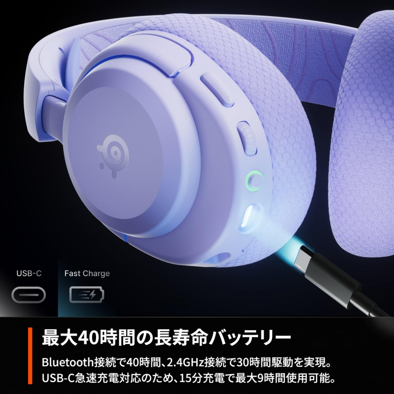 【最大40時間のバッテリー】Bluetooth接続で40時間、 2.4GHz接続で30時間駆動を実現。USB-C急速充電対応のため、15分充電で最大9時間使用可能。