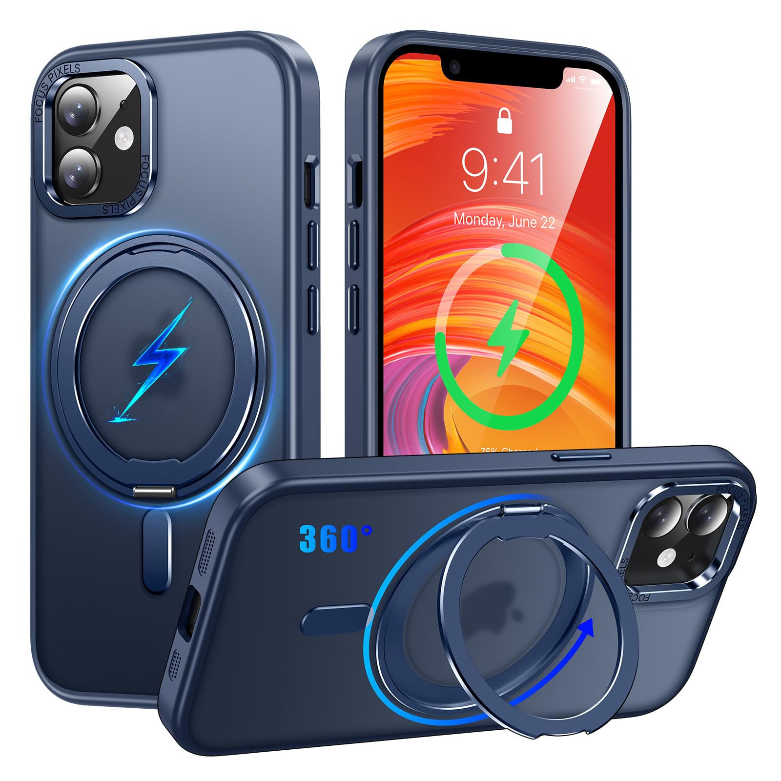 【在庫処分】iPhone 12 / iPhone 12 Pro 適用 ケース Magsafe対応 アイフォン12 / アイフォン12プロ カバー 360°回転スタンド Uovon スマホケース アイホン 12pro 携帯ケース ワイヤレス充電 車載ホルダー 対応 ストラップ穴付き 半透明 指紋防止 黄变防止 ・ ブルー