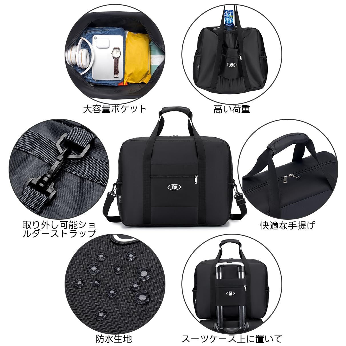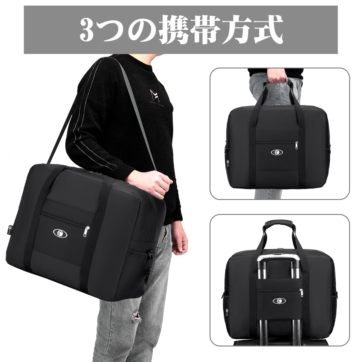 【2022最新】SPAHER キャリーオンバッグ ボストンバッグ 折り畳み キャリーバッグ 旅行 機内持ち込み メンズ レディース 防水 収納 軽量 大容量 スポーツ 通勤 出張 32L(ブラック)