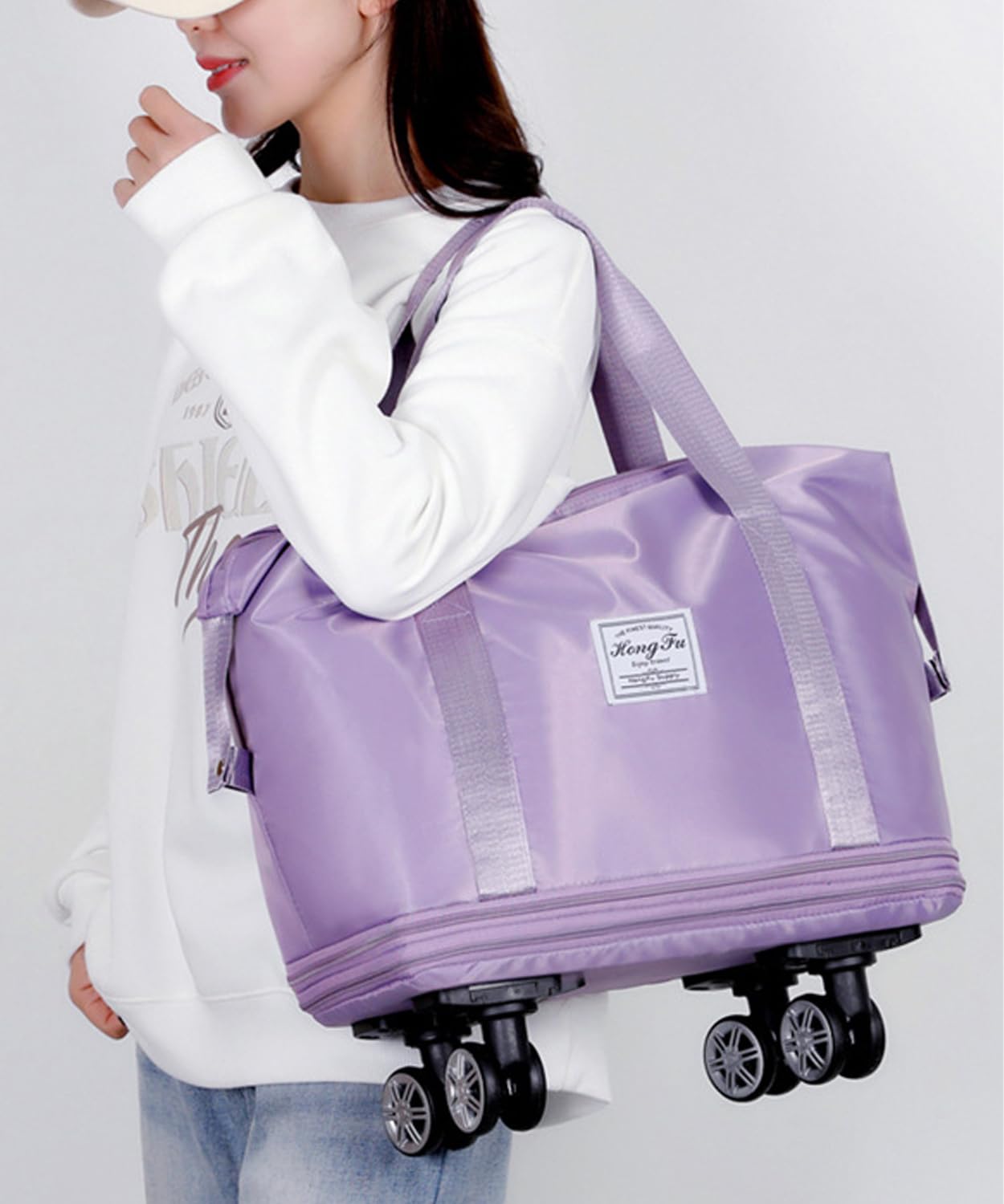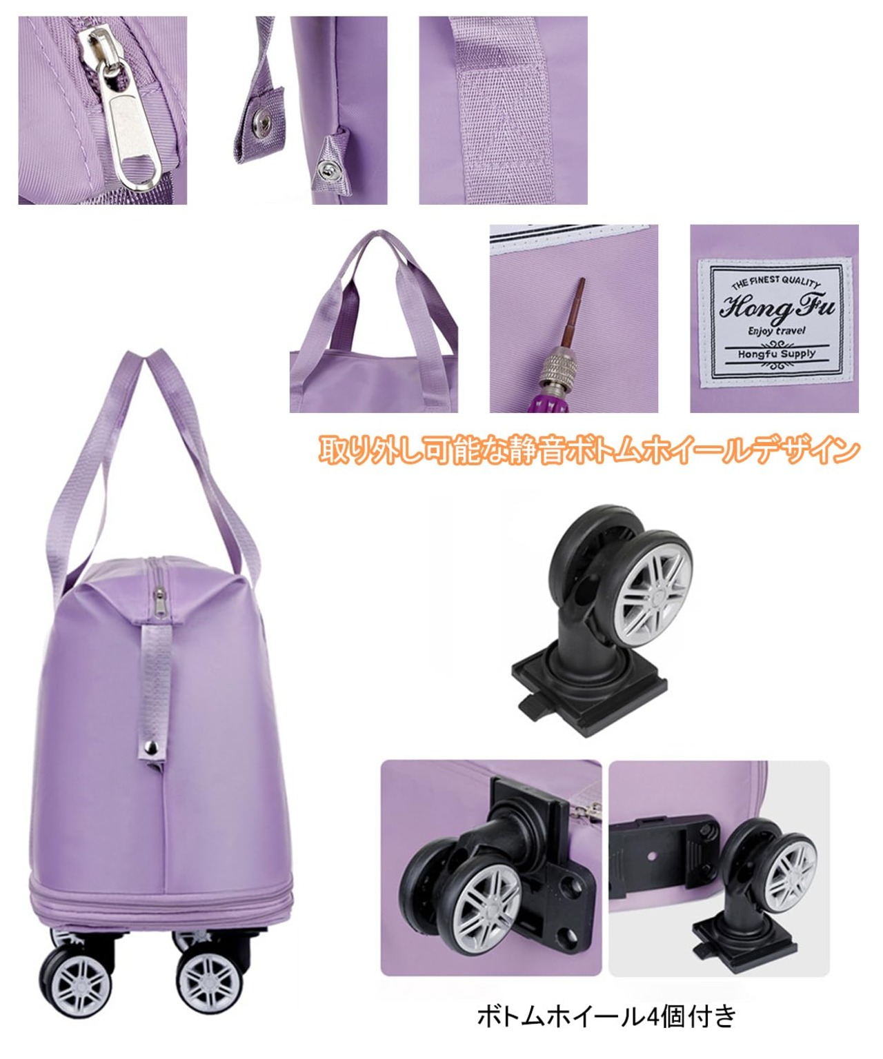 【取り外し可能な車輪】バッグの底には、簡単に取り外しできる4つのキャスターが付いており、キャリーケースのように荷物を引いて移動でき、長距離の移動でも負担が軽減されます。車輪は簡単に取り外しや取り付けができ、状況に応じて柔軟に使いこなせます。