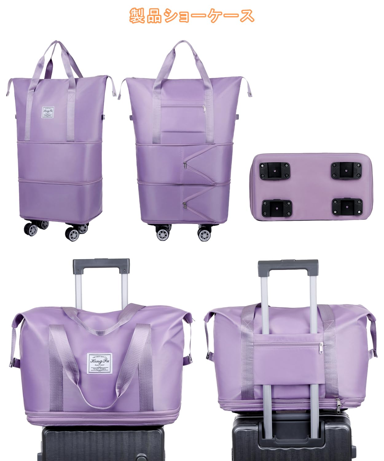 【3wayデザイン】このバッグは、手持ち、肩掛け、キャリーオンの3通りの使い方ができ、場面に応じて最適な持ち方を選べます。ジムバッグ、旅行バッグ、ショッピングバッグ、アウトドアバッグなど、さまざまなシーンでご使用いただけます。