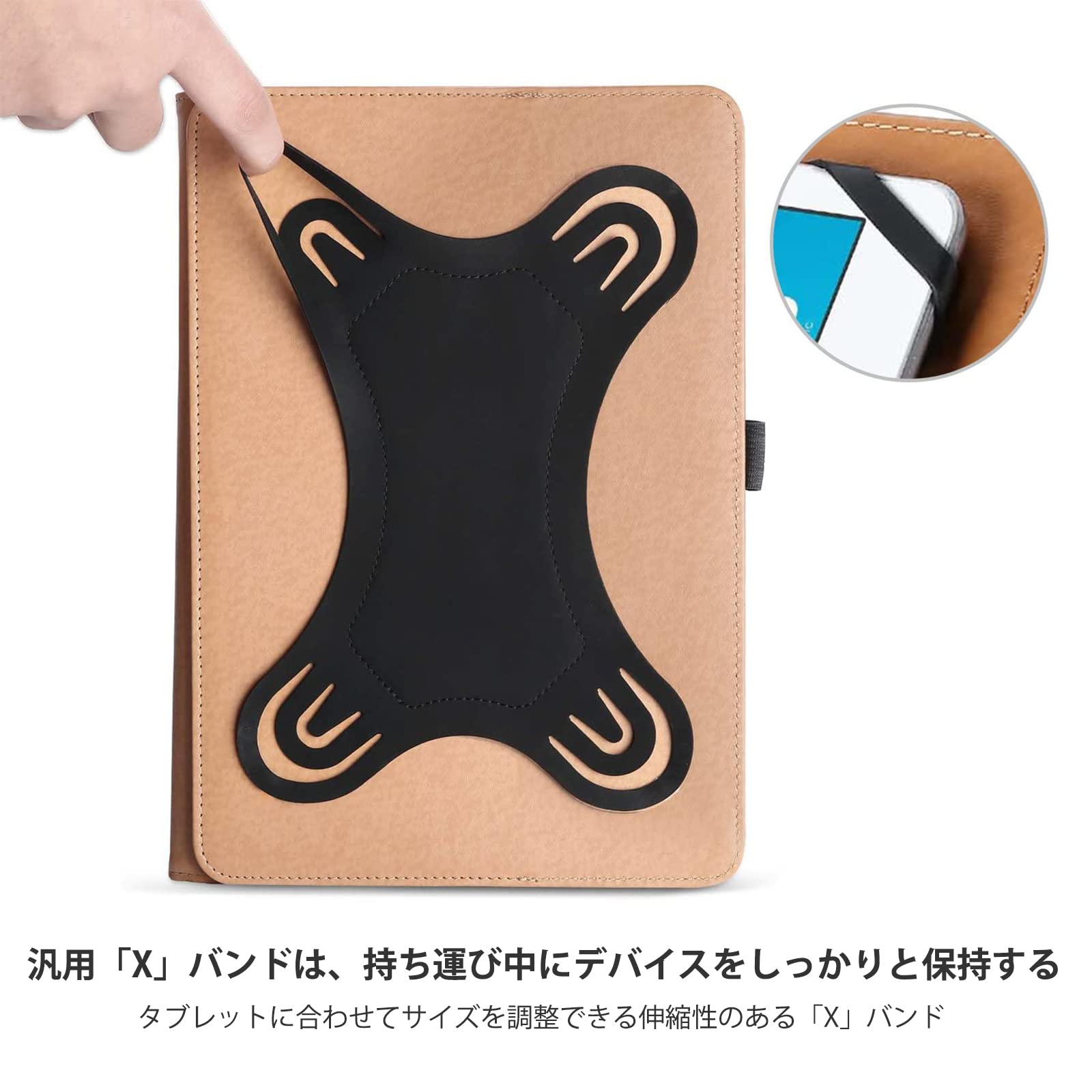サイズ:26.6 x 19.4 x 1.8cm;※※ご注意:①後ろにカメラの開口部がなく、自動スリープ/ウェイクをサポートしません。②本製品は汎用型のタブレット保護ケースなので、すべての機種に完全対応しかねます。実際に使えるか否かはお客様自身による判断が必要です。③タブレットの具合により違うサイズの"X"バンドを選ぶ必要があります。