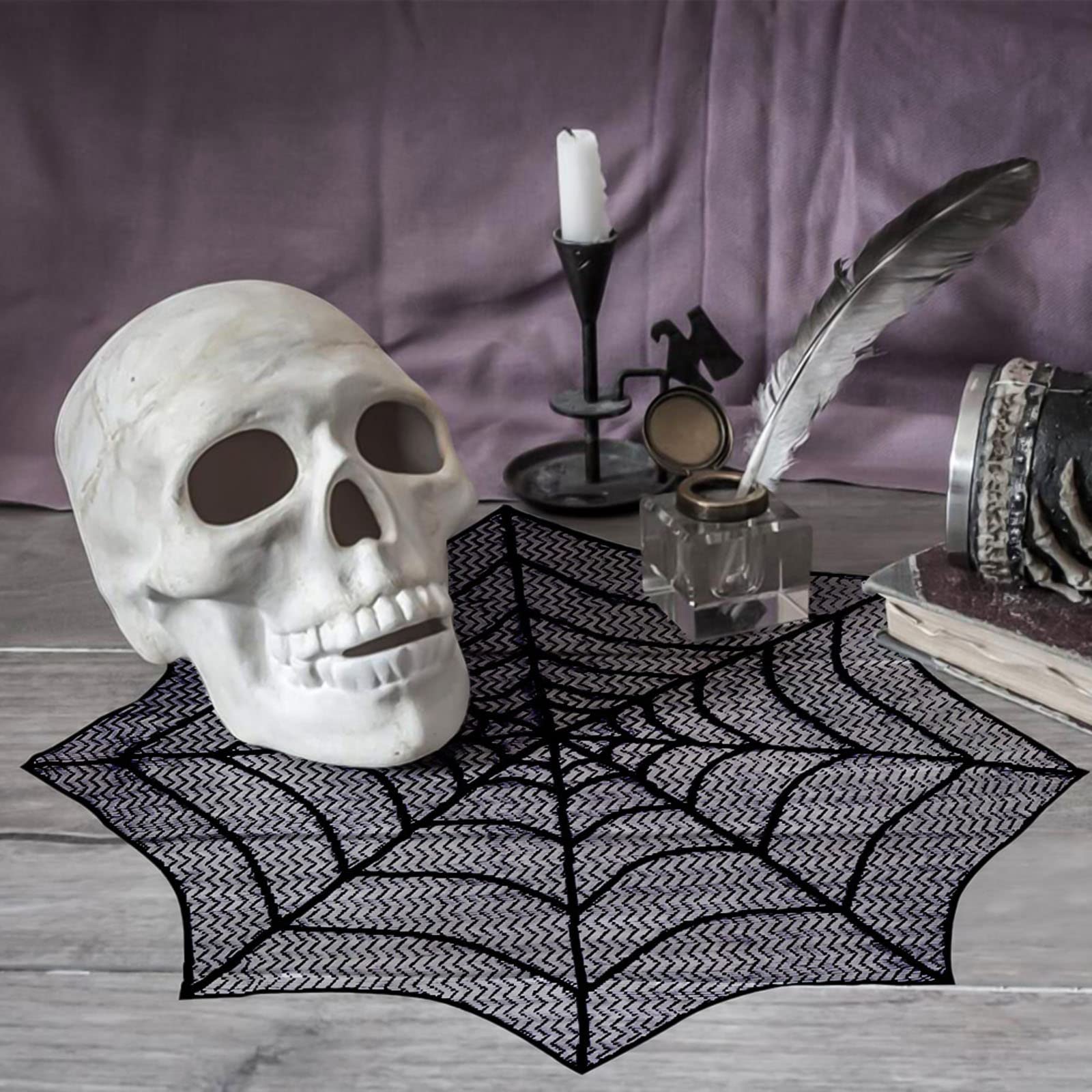 【LEISURE CLUB】ハロウィン 飾り テーブルクロス クモの巣 テーブルカバー テーブルランナー レース刺繍 装飾 おしゃれ パーティー 飾り付け 玄関 屋外 部屋 食卓 不気味 お化け屋敷 断熱 防汚 丸洗い可 滑り止め(30*30インチ)