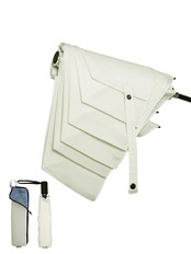 【形状安定加工】折りたたみ傘の畳みにくい難点を解消するために開発した「Selfold」シリーズがついに登場しました!形状安定加工により、通常の折りたたみ傘よりも迅速にたためます。また、収納時にはかさばらず、綺麗にまとめることができます。一般的な形状安定傘は、傘地にシートを貼り付けて作るため、重さが気になったり、使用している中で剥がれてきたり、骨に負担がかかったりする問題点があります。一方でKIZAWAの形状安定傘は特殊な熱加工により「生地そのもの」に折り目をつける加工を施しているため、軽さはそのままで半永久的に効果が持続します。たたむ動作が簡単になるので、これまで苦手意識のあった方も使う煩わしさが軽減されます。