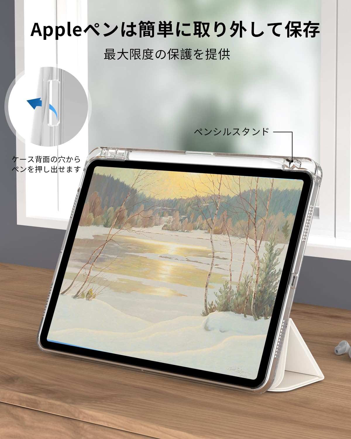 【内蔵鉛筆ホルダー】内蔵鉛筆ホルダーは鉛筆カバーをしっかりと掴みます。保管や持ち運びに便利で、紛失や破損を防ぎ、いつでもどこでもiPadを快適に使用できます。(ご注意:Pencilは含まれていません)