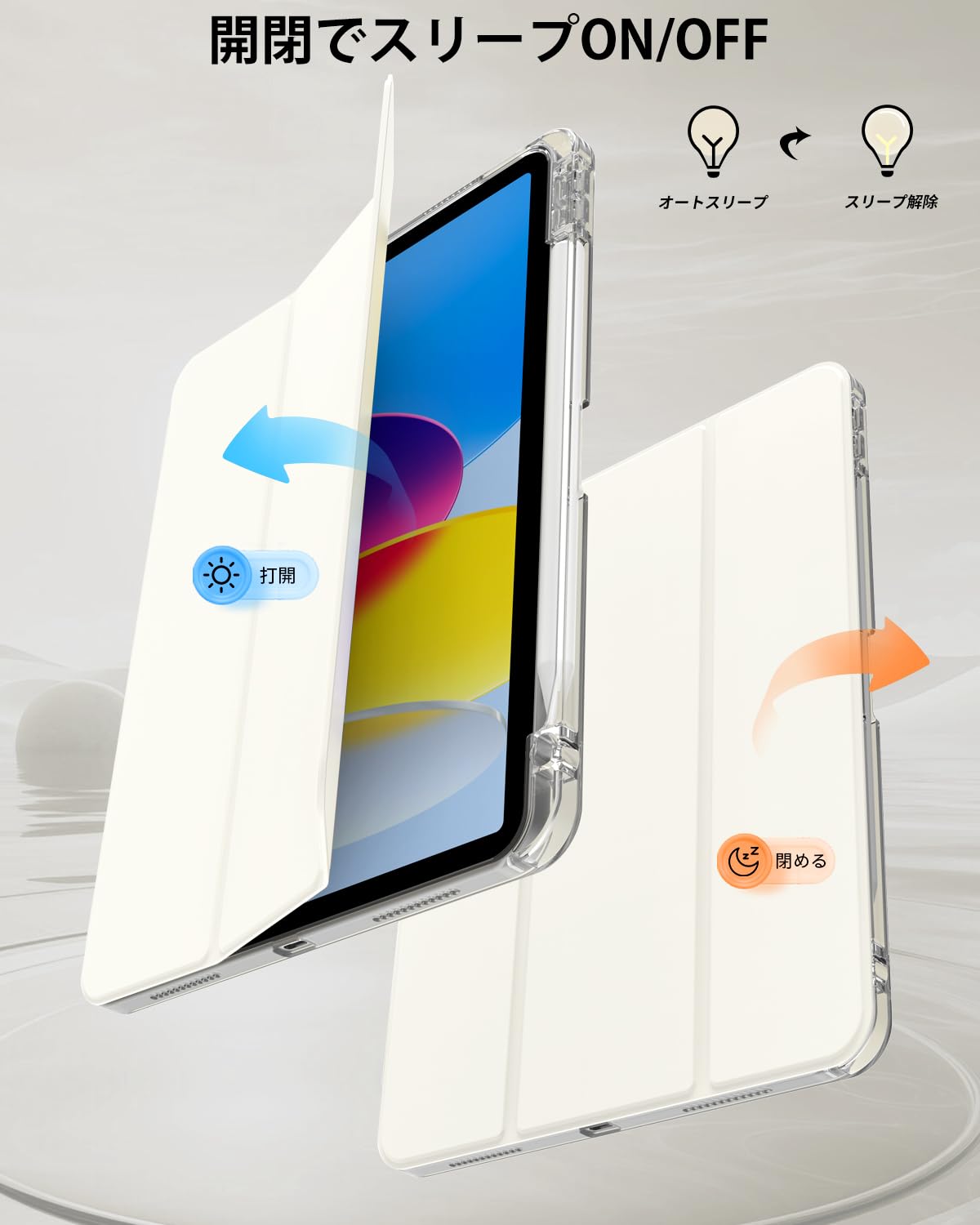 【オートスリープ/ウェイク機能】内蔵の磁気ストリップは、スマートな自動ウェイクまたはスリープ機能をサポートしており、いつでもiPadを簡単にウェイクまたはクローズでき、タブレットの電力を節約し、寿命を延ばすのに最適です。