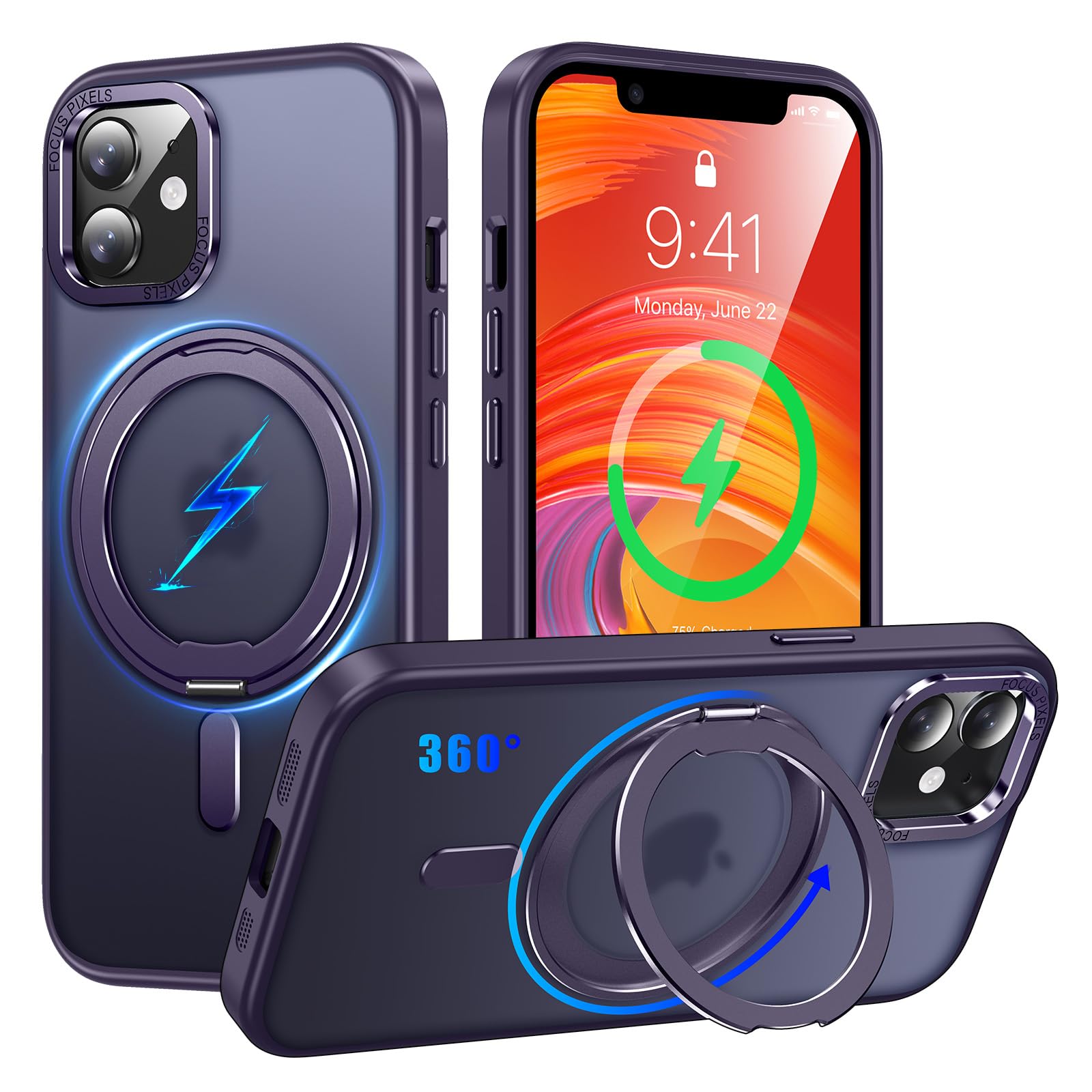【数量限定】iPhone 12 / iPhone 12 Pro 適用 ケース Magsafe対応 アイフォン12 / アイフォン12プロ カバー 360°回転スタンド Uovon スマホケース アイホン 12pro 携帯ケース ワイヤレス充電 車載ホルダー 対応 ストラップ穴付き 半透明 指紋防止 黄变防止 ・ パープル